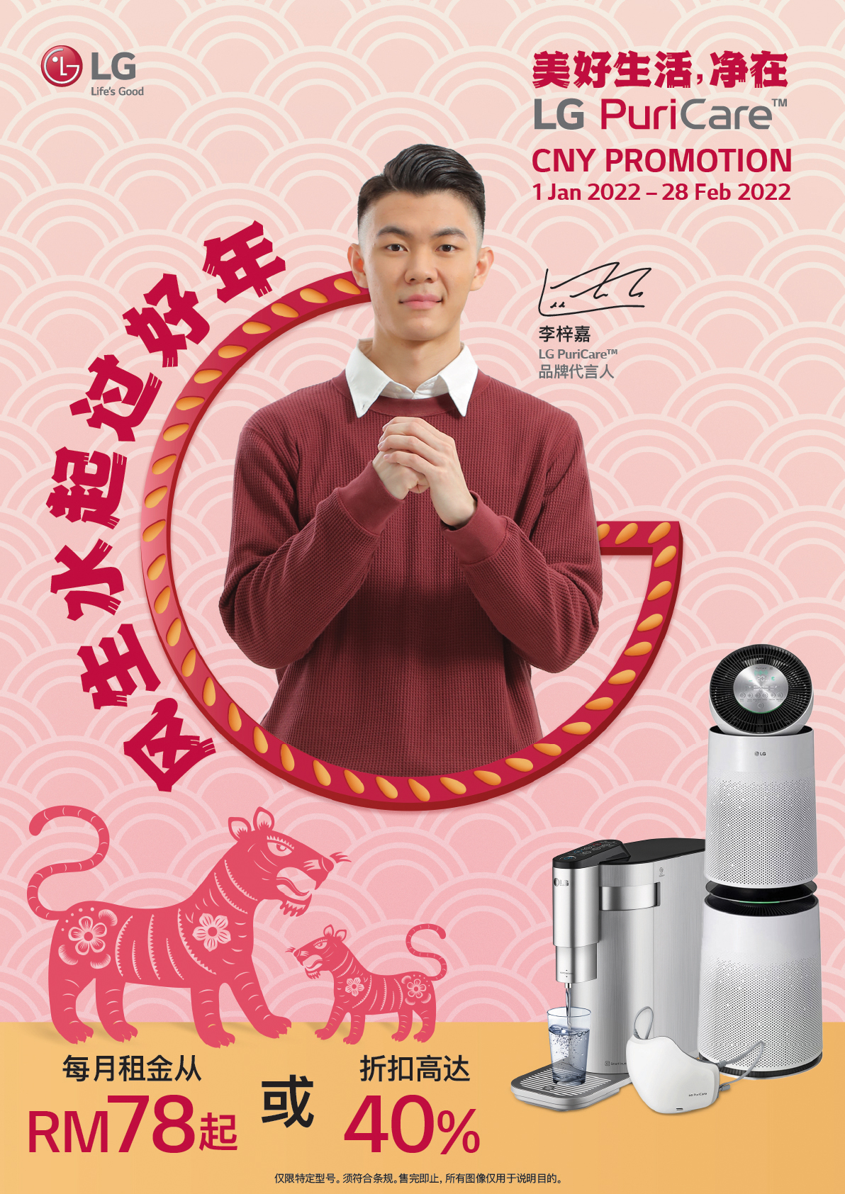 配合农历新年的到来,LG 推出最新的新春佳节促销活动,想要入手一台 LG PuriCare™ 无水箱净水机和空气净化机,现在就是最佳时机!一个月最低只需RM78!