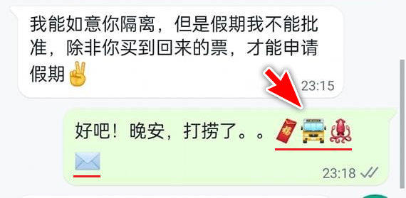 ▼ 老板突然 WhatsApp 通知男子:「你的新年假期可以批准了。」接着发了一张截图给他。