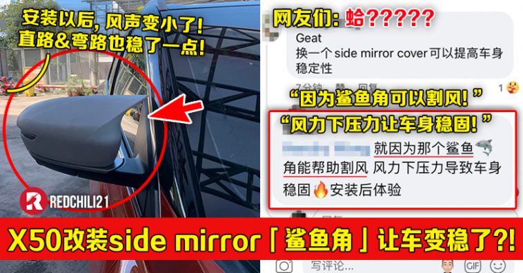Proton X50改装side mirror「鲨鱼角」!大马网友:现在风声变小+车身变稳了!评论区:整只鲨鱼放车顶会更稳!