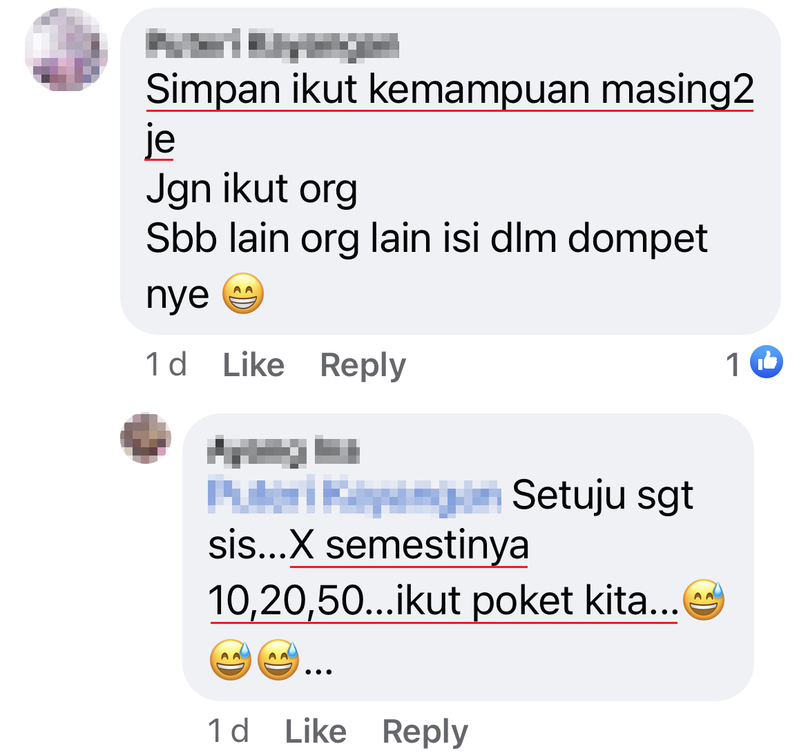 ▼ 一些网友则是不限数地存,有RM50、RM100的: