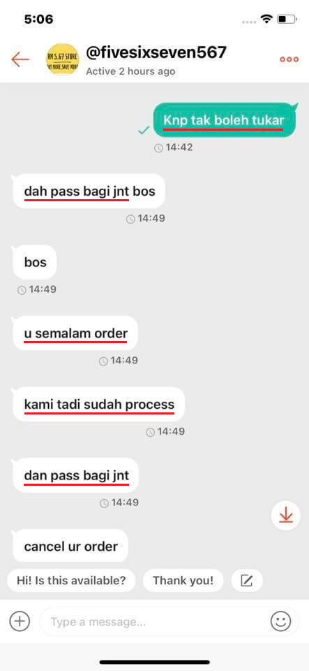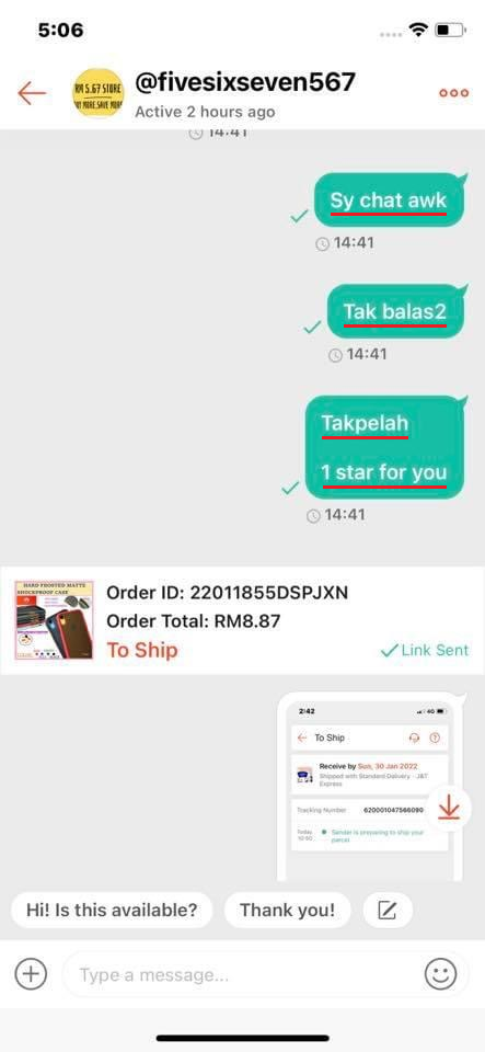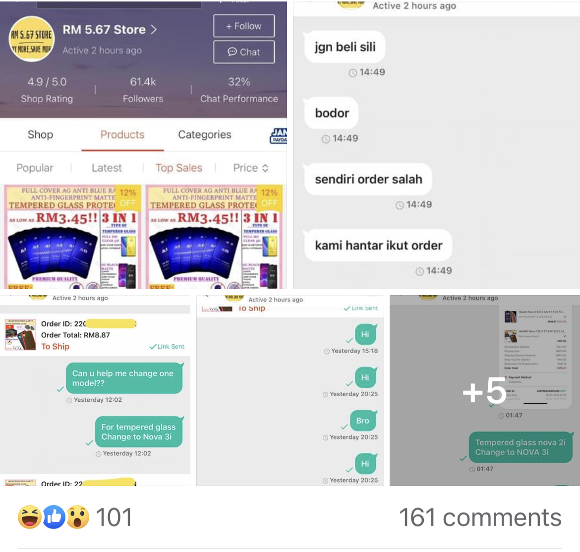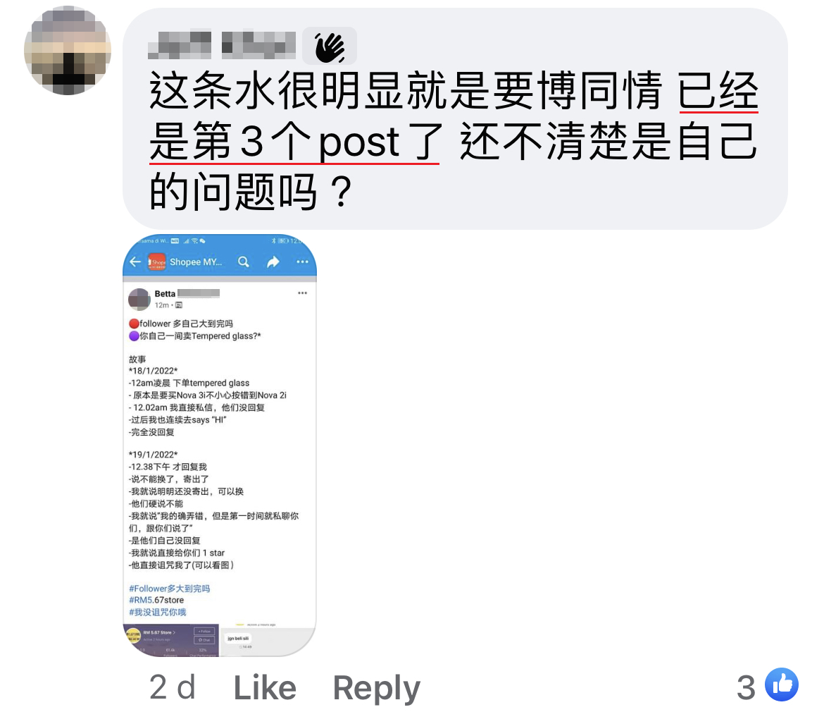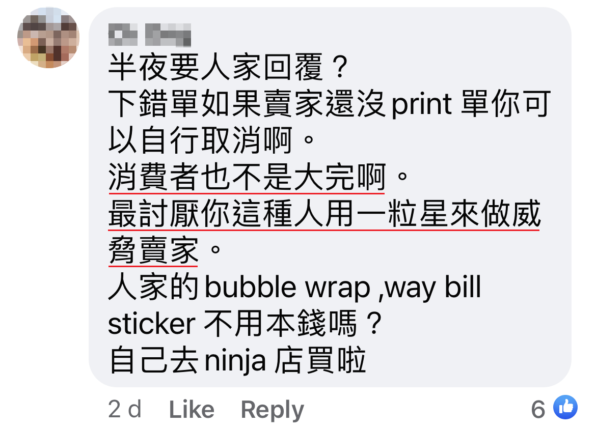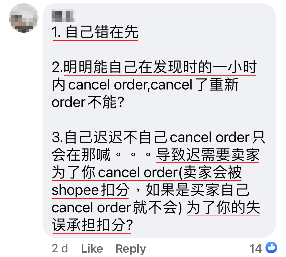 如果不小心下错单,第一间时间可以马上取消订单再重新下单的。然而这位 Shopee 买家却选择不取消订单,而是拼命私信卖家要求更改。卖家发货以后才回复买家说不能更换了,让买家超生气说要给1颗星的评价。