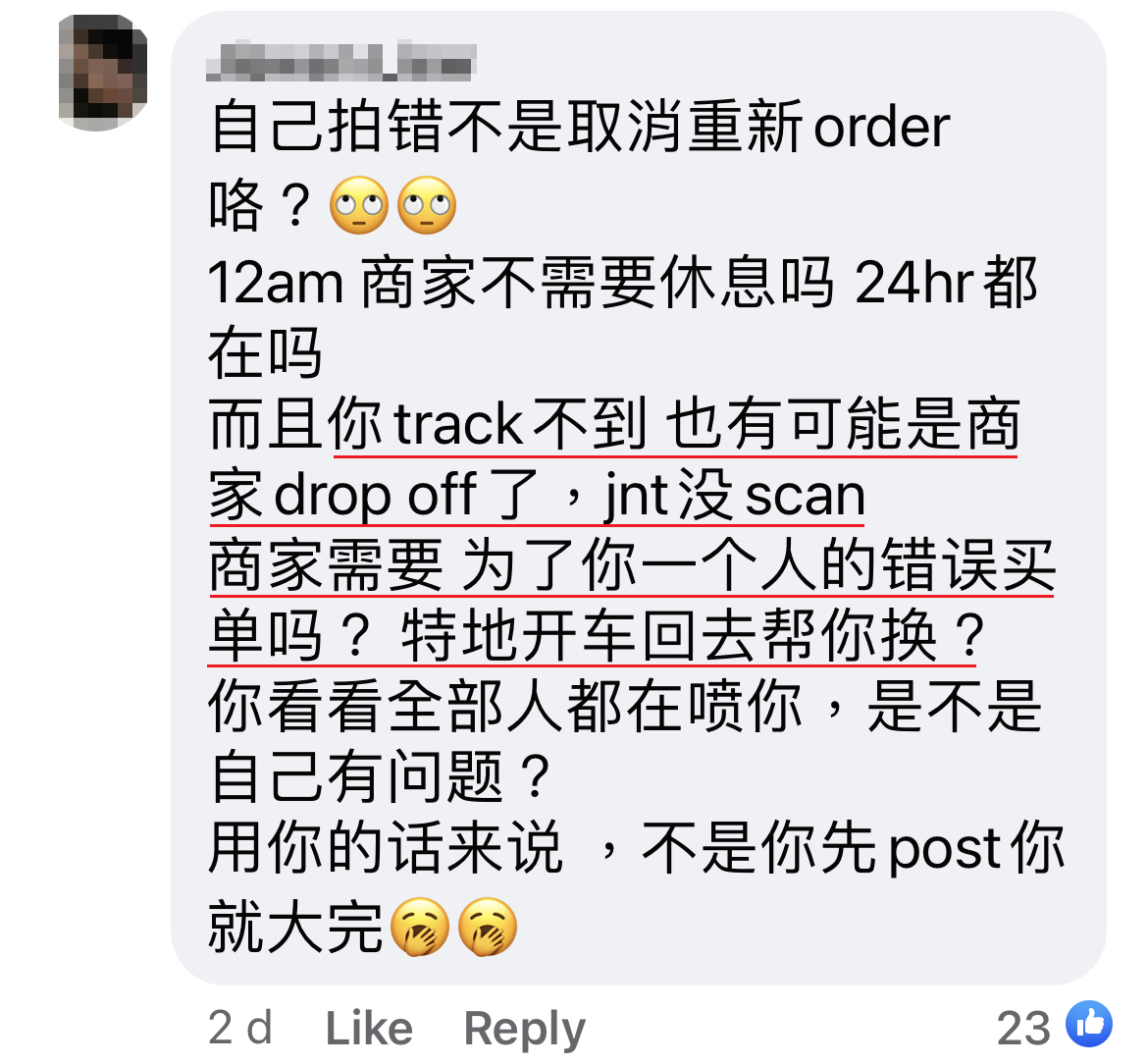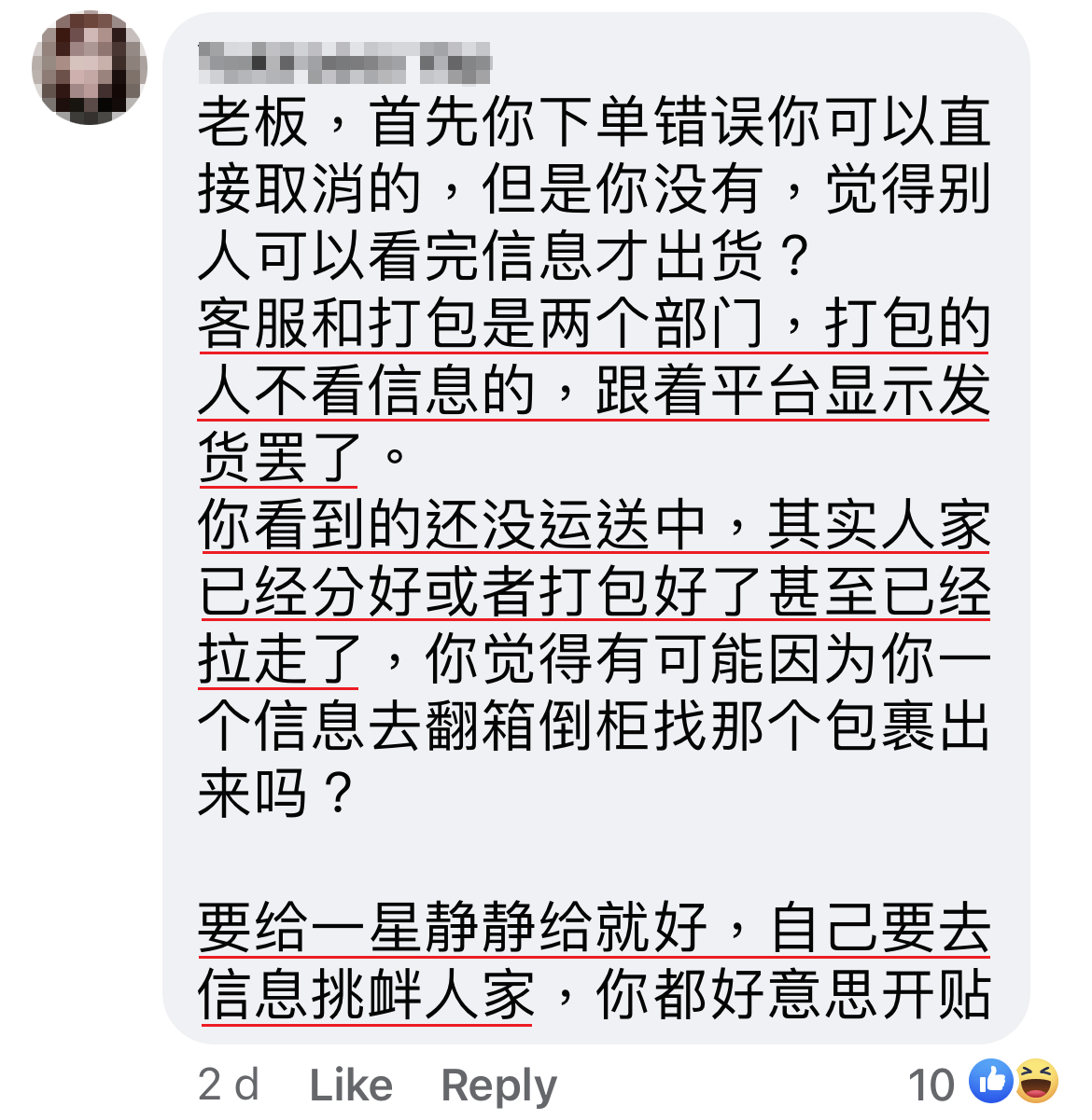 如果不小心下错单,第一间时间可以马上取消订单再重新下单的。然而这位 Shopee 买家却选择不取消订单,而是拼命私信卖家要求更改。卖家发货以后才回复买家说不能更换了,让买家超生气说要给1颗星的评价。