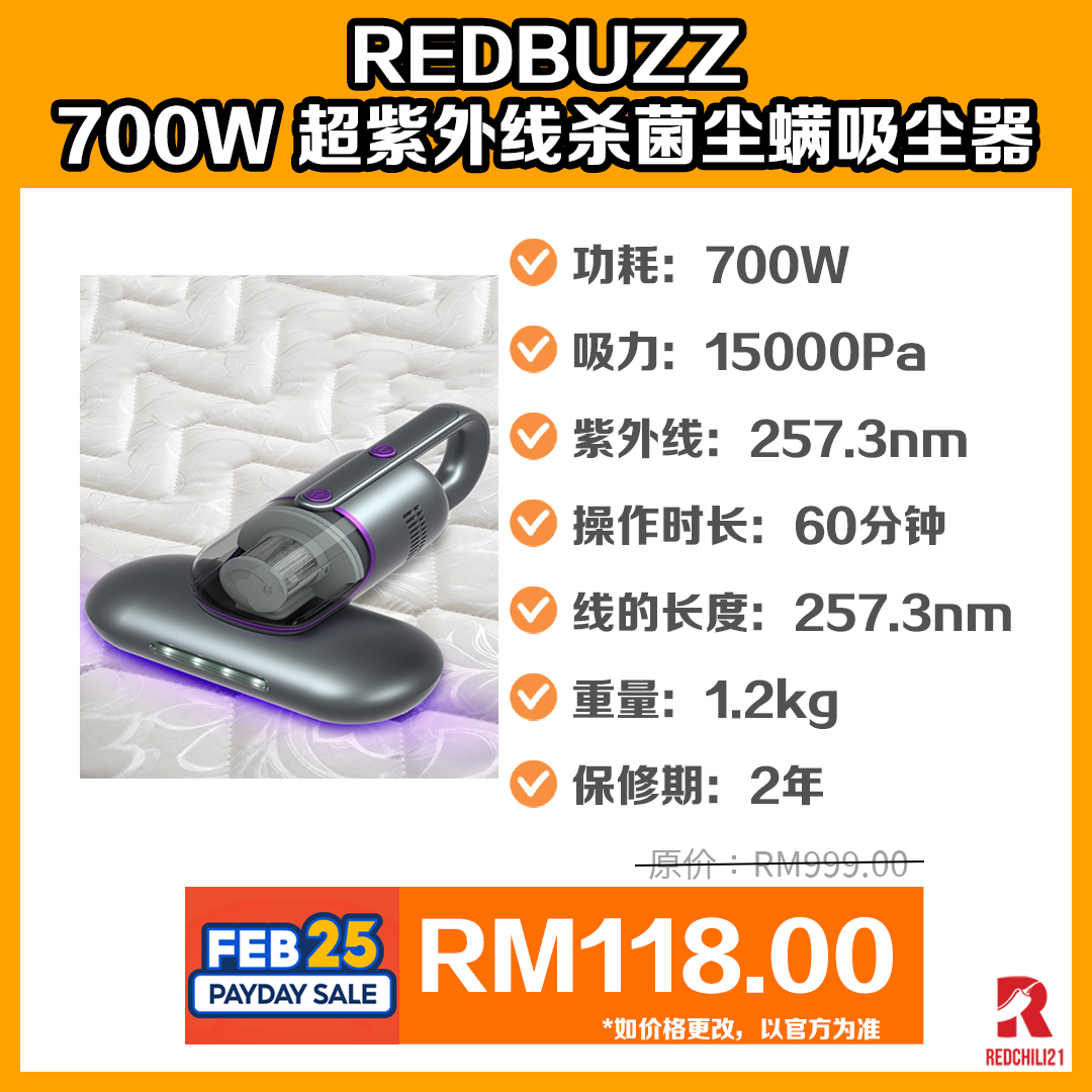 ▪ ① REDBUZZ 700W Dust Mite Vacuum Cleaner Dust Mite Killer Ultra UV Light Sterilization