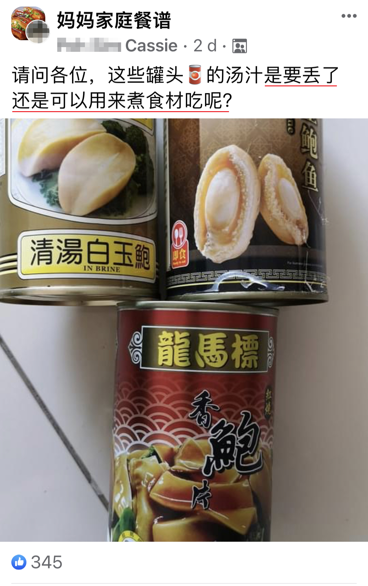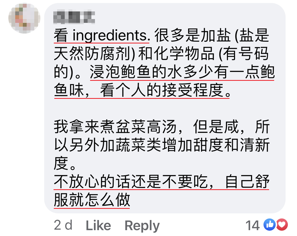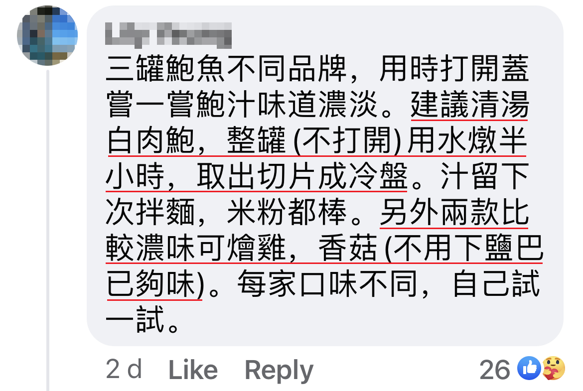 近日一名大马网友在脸书群组发帖询问,罐头鲍鱼的汤汁应该要倒掉还是可以用来烹饪?!热心的网民纷纷在评论区提供建议,原来汤汁可以这样煮的~