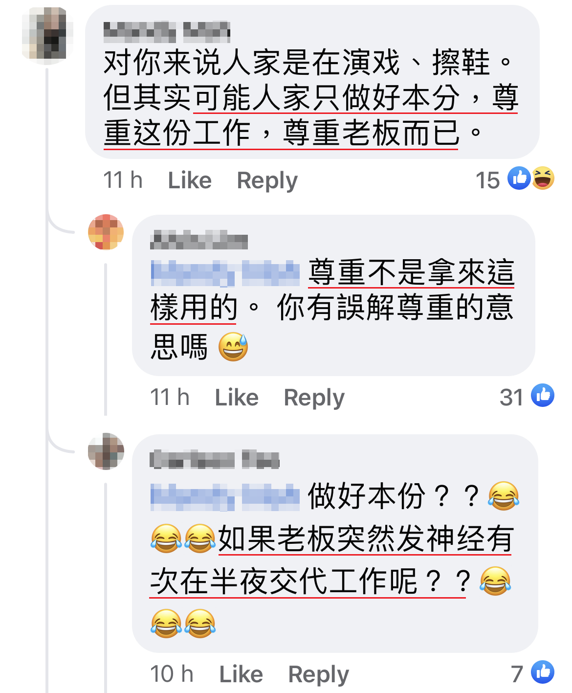 除夕夜如果有重要事件找员工就算了,但其实不是。然后那些想表现自己的员工,急着 reply 老板,拖累其他员工也必须 reply 排队说 done,是一群小学鸡吗?