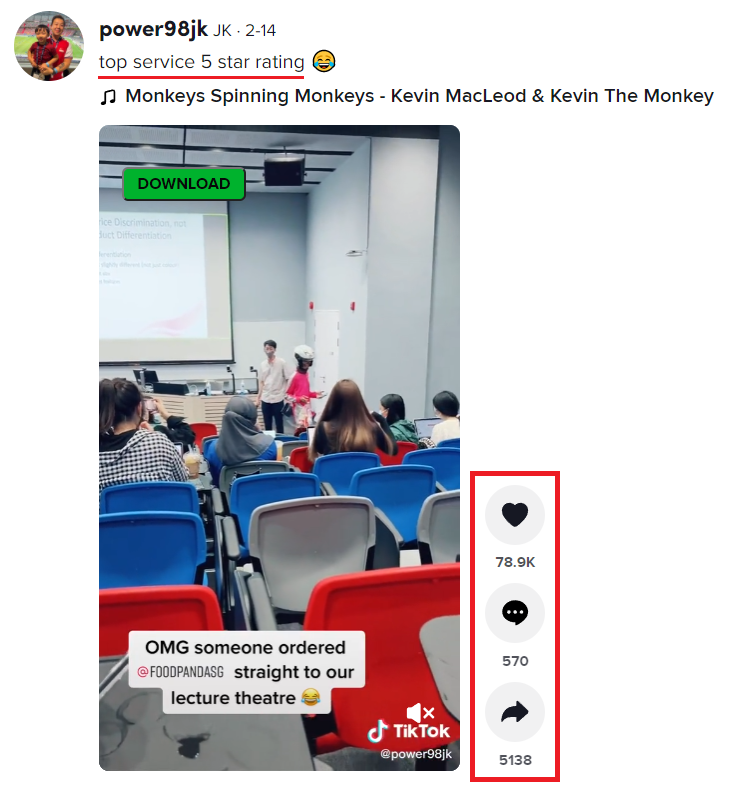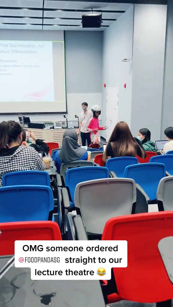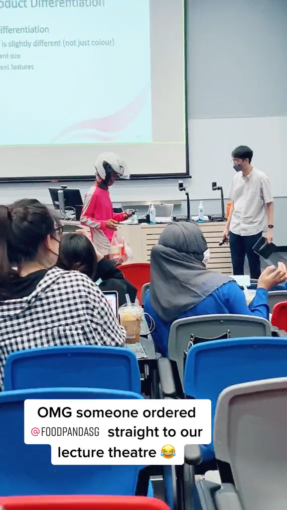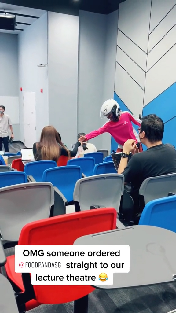 近日一段 TikTok 视频在网上流传,新加坡的 Foodpanda 外送员直接走进大学演讲厅送餐,因为他的顾客就是坐在里面的其中一位女大生!