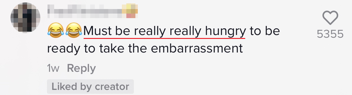 ▼「她一定是很饿,饿到都不在乎尴尬了!」