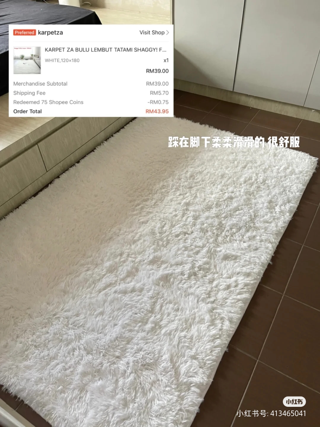 房间还在一点点改造,先买个地毯盖掉那不好看的地砖。地毯踩上去是软软的,但是就是有点滑,像我这样需要上下床的可能需要小心一些。