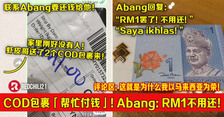 COD包裹「帮忙付钱」快递Abang:RM1罢了不用还!评论区:这就是为什么我以马来西亚为荣!