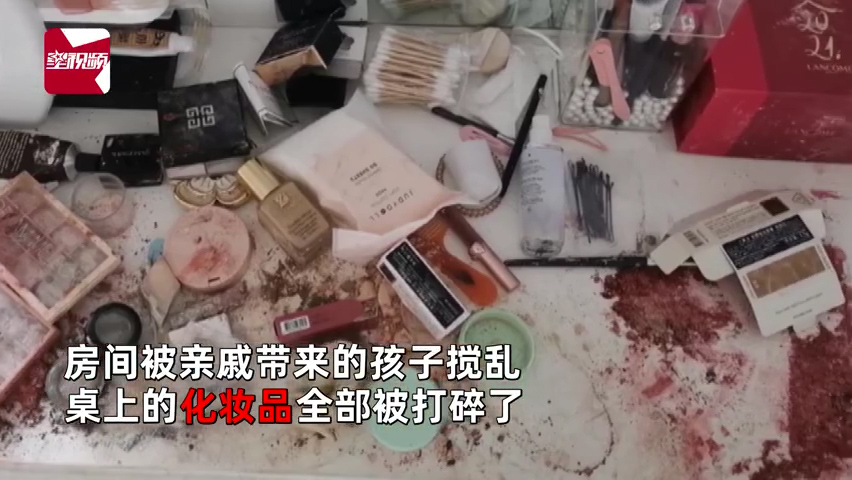2月14日当天,陕西西安一名女孩的亲戚带着6岁的孩子来家里做客,当时女孩有事所以出门了一趟,等她回家进房间时发现,房间被亲戚的孩子搅乱,桌上的化妆品全被打碎了!
