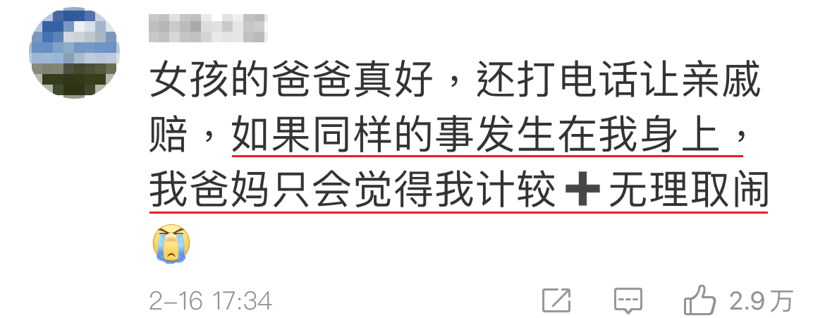 ▼ 同时网友们也赞叹:女孩的爸爸真的好好~