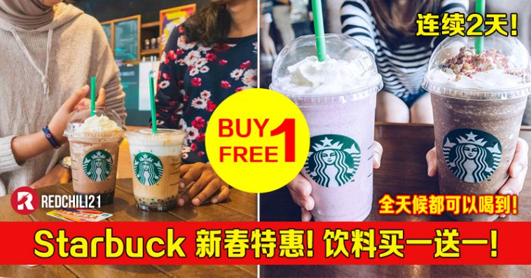 所以大马Starbucks 也乘机为这次的新春添加了一些色彩,那就是推出饮料买一送一的促销优惠,让你可以和亲友们分享这个节日的喜悦!