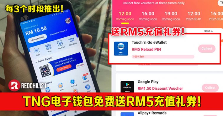这项优惠从即日起至3月6日,TNG 电子钱包推出3种不同现金礼券!其中最值得领取就是TNG eWallet Reload PIN RM5 现金礼券啦!