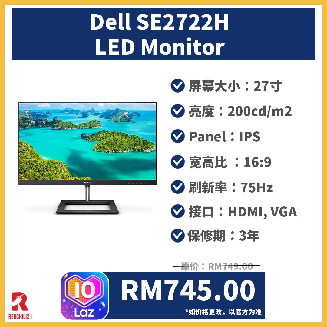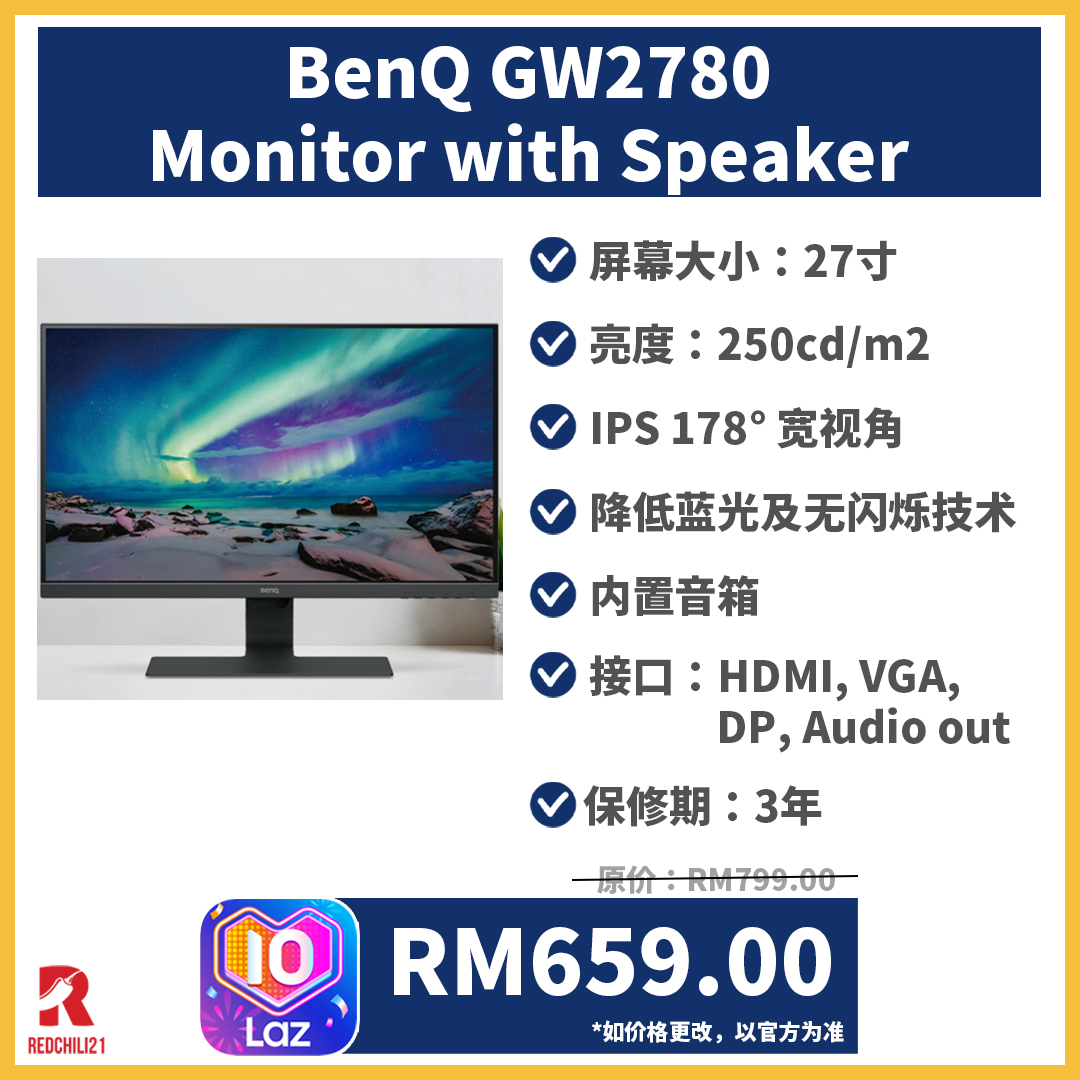 以下10款来自不同品牌的 monitor,全都是RM800以下就能买到!这次 Lazada 3.27大促销入手更便宜哦!