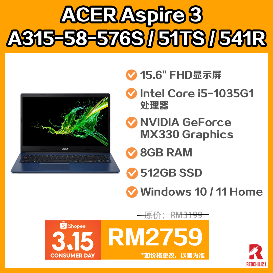 ▪ ④ ACER ASPIRE 3 ( A315-57G-52RE / A315-57G-51TS/ A315-57G-541R)