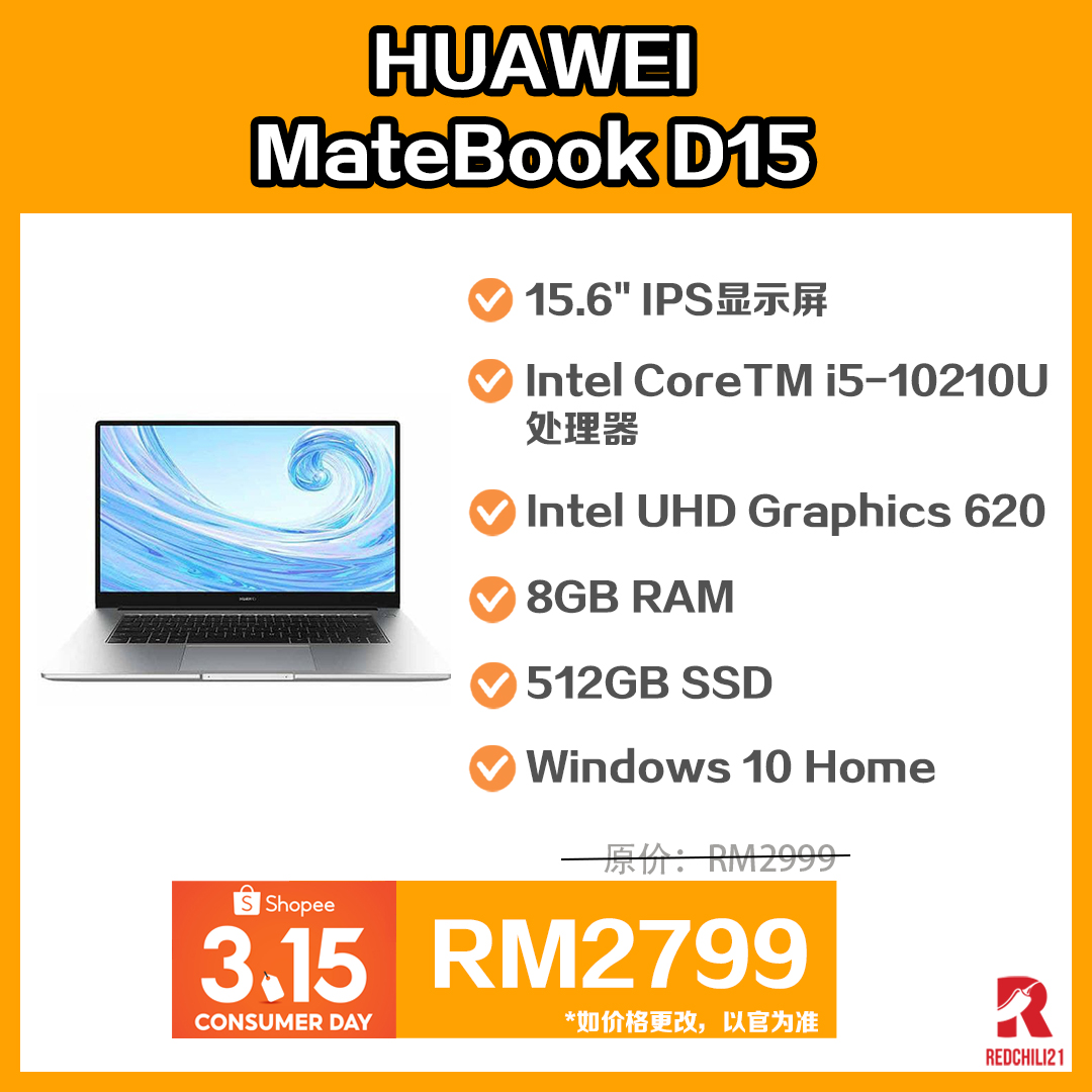 ▪ ⑤ HUAWEI MateBook D15 10th i5 Laptop | Free Backpack