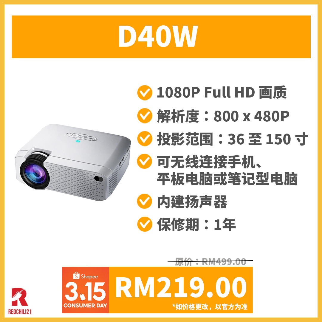 ▼ ③ D40W 2600 Lumens LED HD Wireless Mirror Screen Projector
