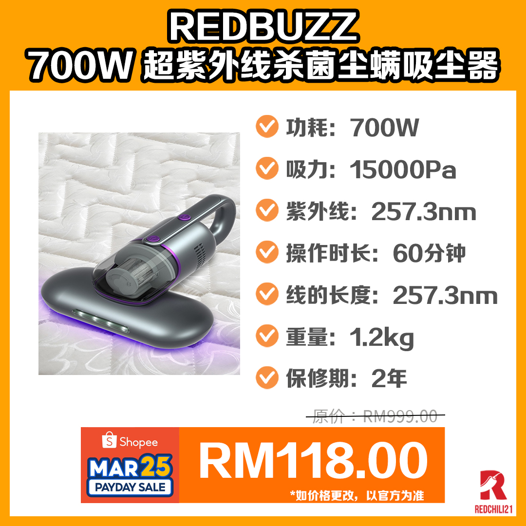 ▪ ① REDBUZZ 700W Dust Mite Vacuum Cleaner