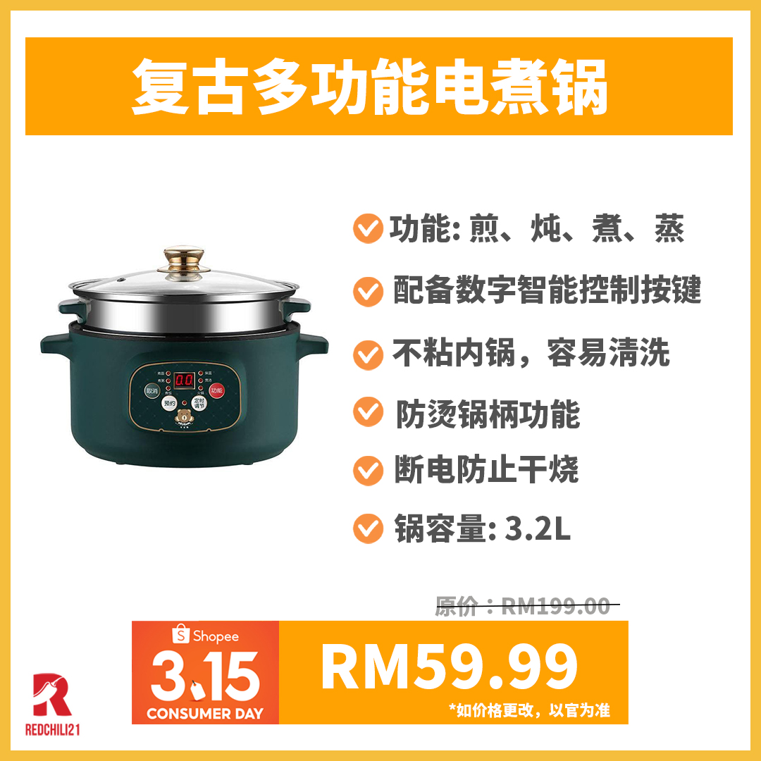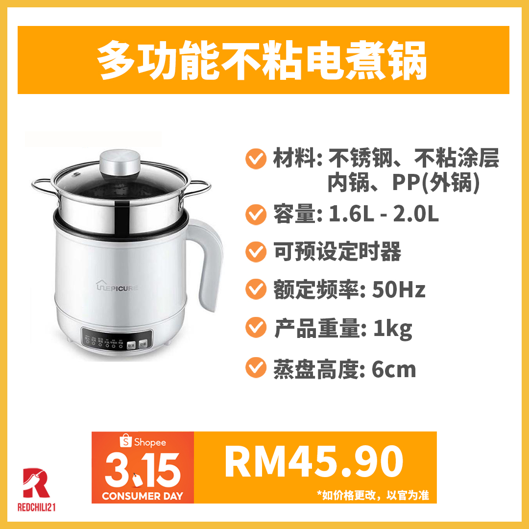 以下8款在 Shopee 就能找到的平价多功能电煮锅,最低只需不到RM50哦!