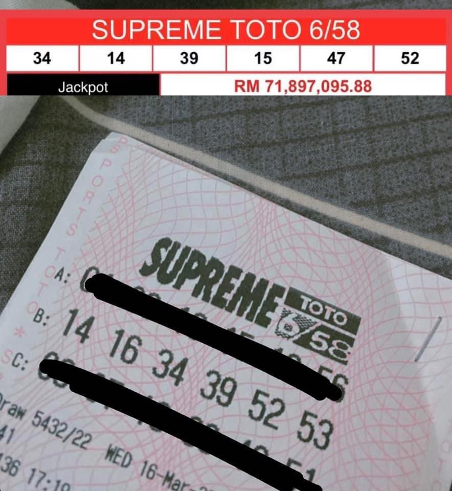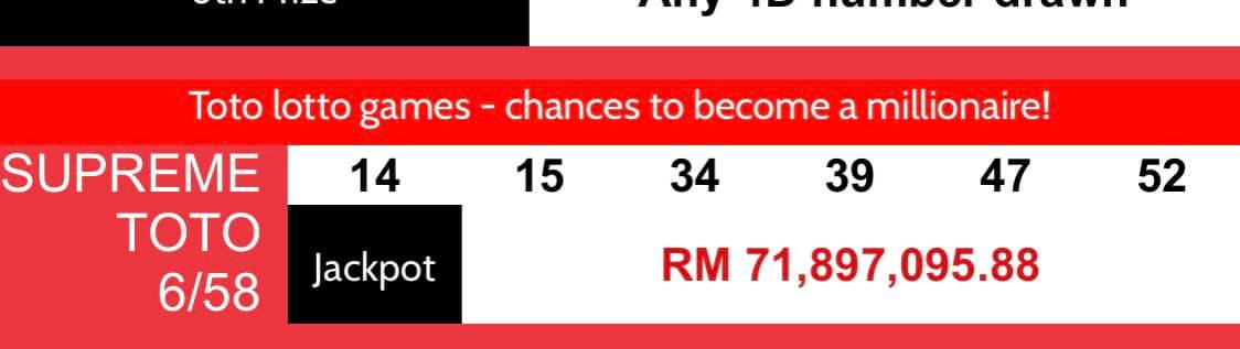 3月16日你暴富了吗?昨天既是“暴富的日子”又刚好是开彩日,所以民众纷纷趁着这天搏一搏投钱下注,而 Supreme Toto 6/58 累积奖金就在昨天创下了有史以来的最高纪录!
