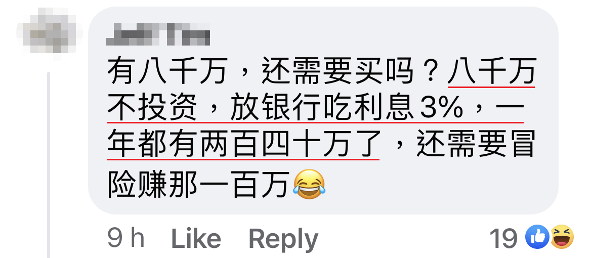 ▼ 如果有8000万,还不如稳稳地存放在银行里赚利息~