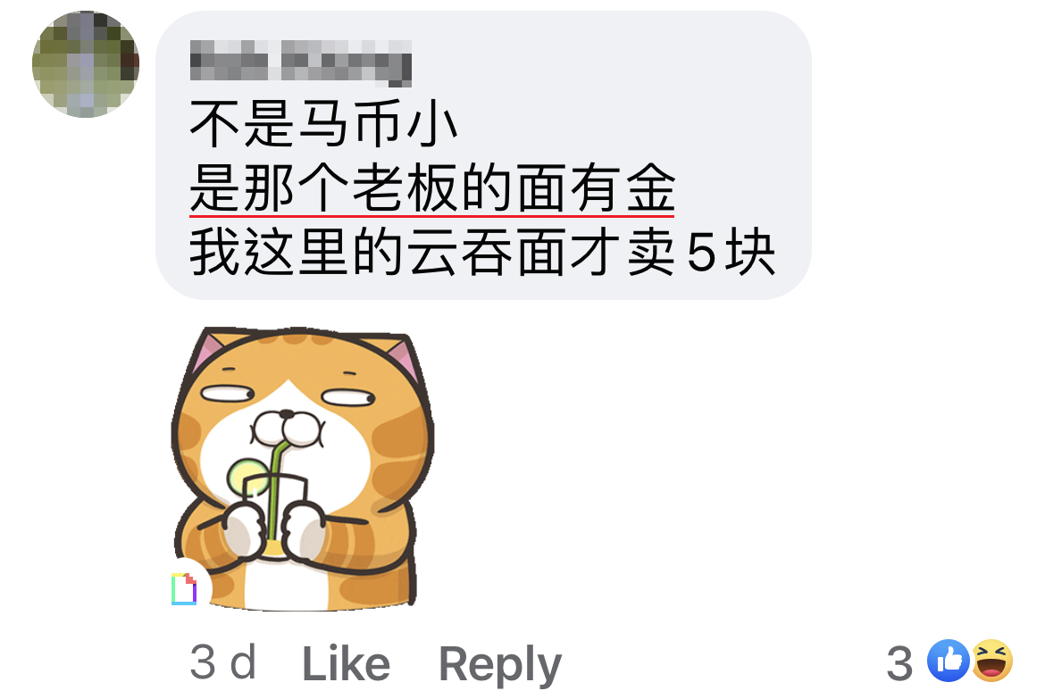 但随着近几年通货膨胀、物价上涨,连云吞面也涨价了!一名新山网友日前打包3包云吞面没有特别加料,一包竟然就要RM11.30!事主傻眼直呼:现在马币已经变得那么的“渺小”!