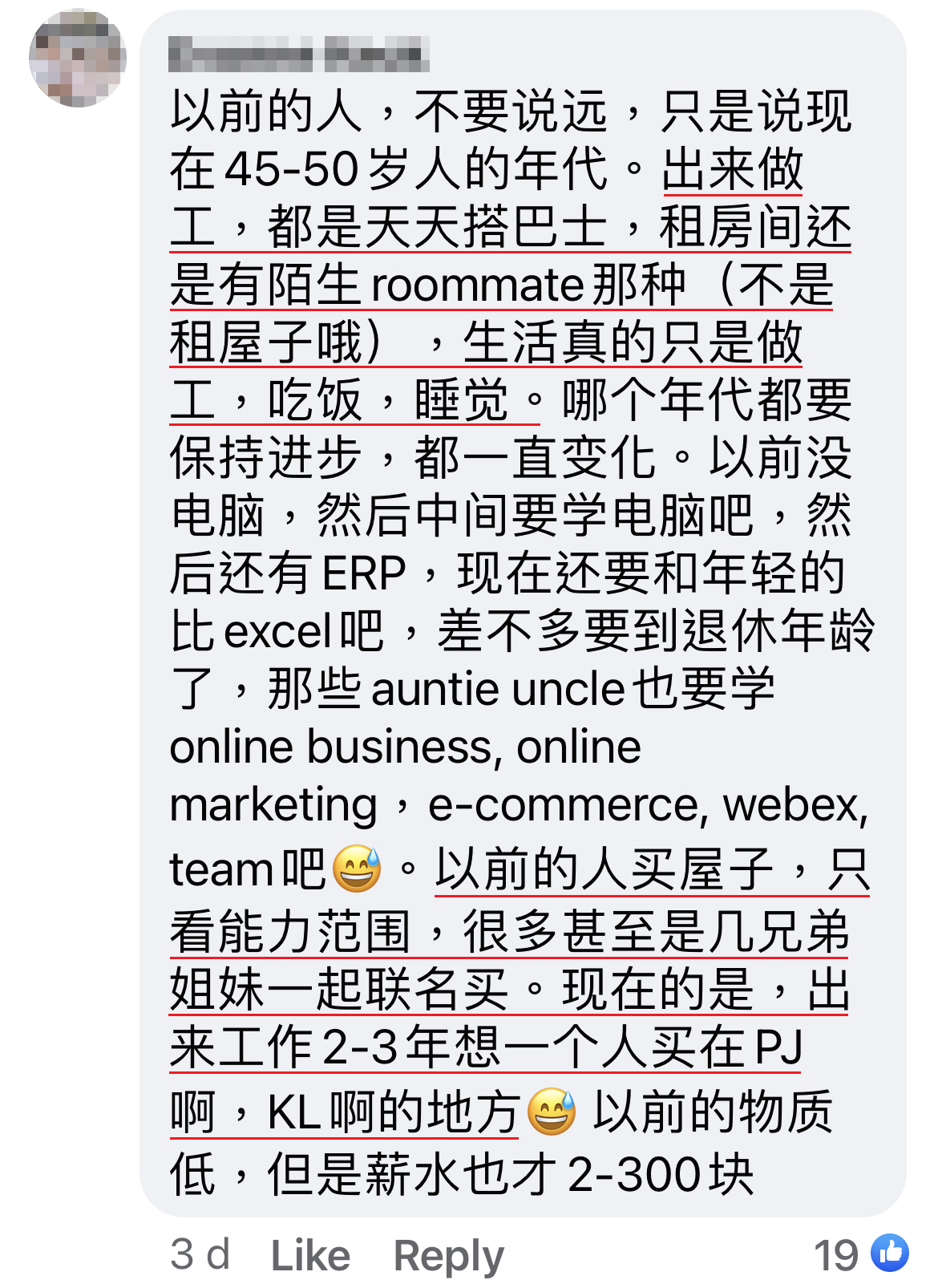 一名大马网友匿名投稿PO文,上一辈的年代 VS 现代年轻人,感觉一代比一代辛苦,生活越来越不容易!