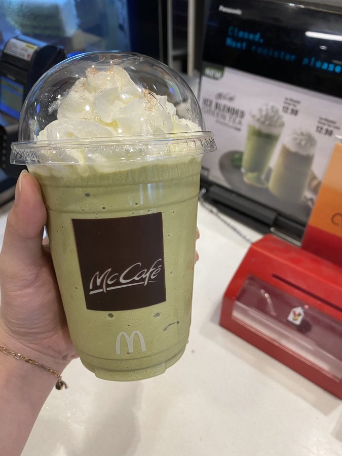 我本身不喜欢喝咖啡所以没叫 Matcha Latte,可是外面的 Matcha Latte 是放牛奶不是咖啡的不是嗎?然后我以为 Ice Blended Green Tea 只是茶叶泡的水然后打成冰,原谅我的智商。