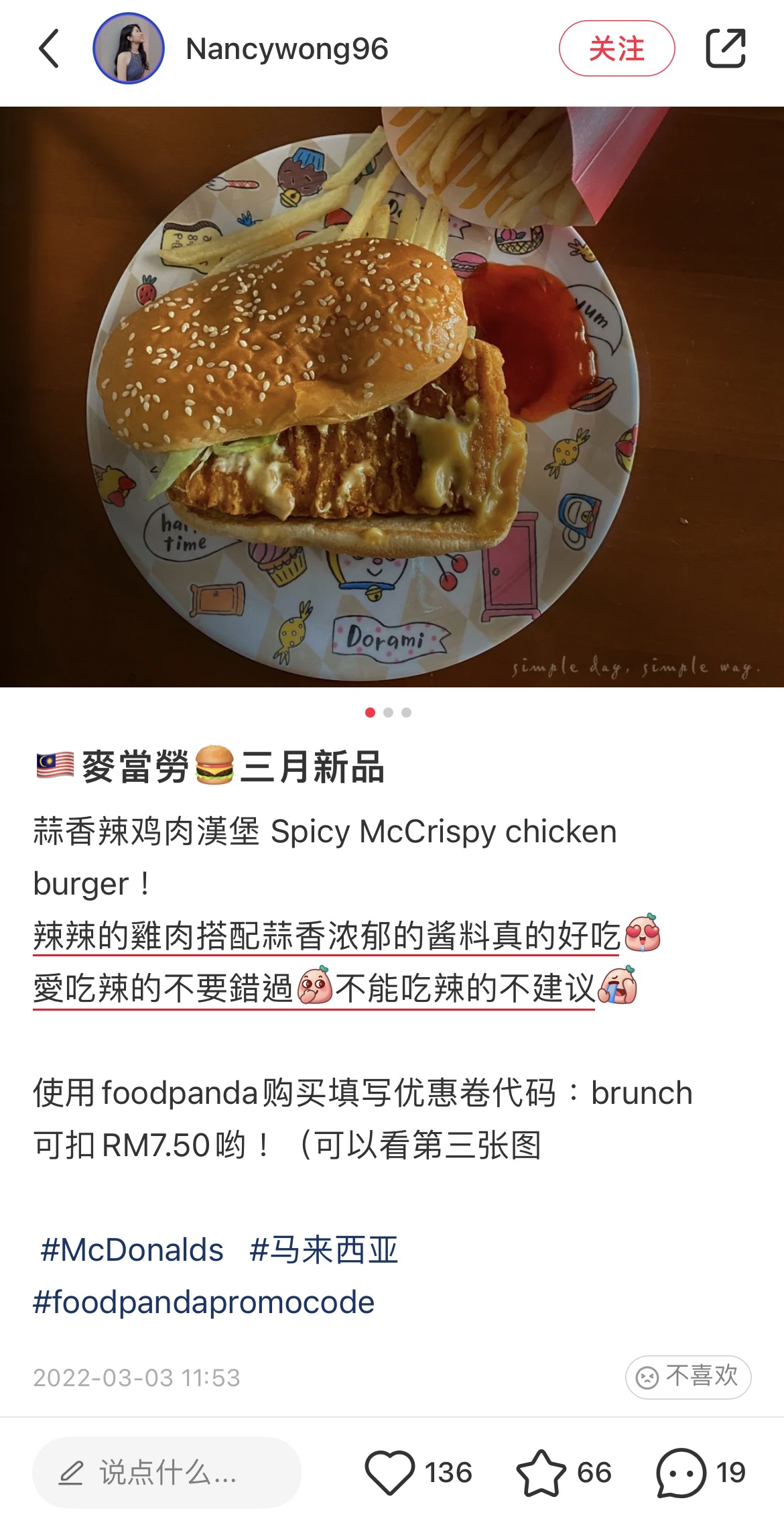 ▼ 楼主去麦当劳买早餐时还获得免费 Nasi Lemak 的优惠券!