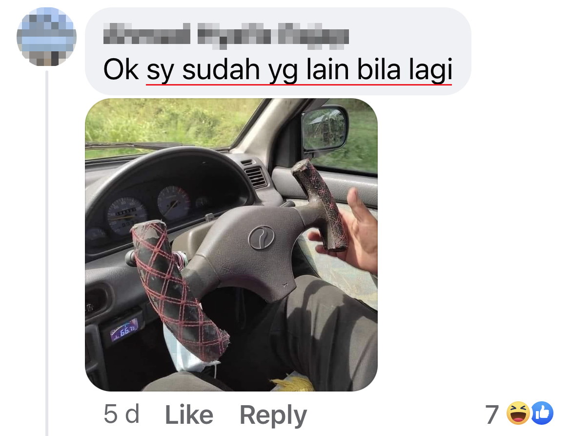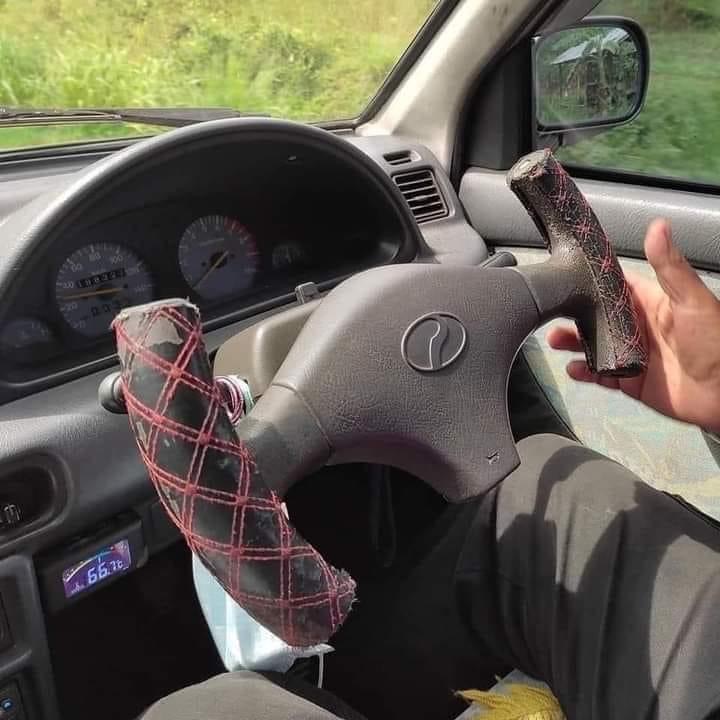 ▼ 网友改装后的方向盘!照片中可以清楚地看到,方向盘的上半圈已经没有了!虽然驾着的是大马国民跑车 Myvi,但方向盘进行改装以后就变成超有个性的设计,从 Myvi 变成 F1 跑车了!