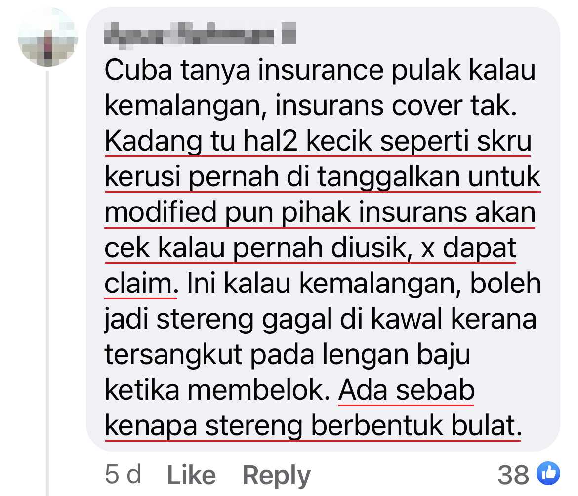 ▼ 「把方向盘改装成这样,不知道如果发生意外的时候,保险还会不会理赔?」