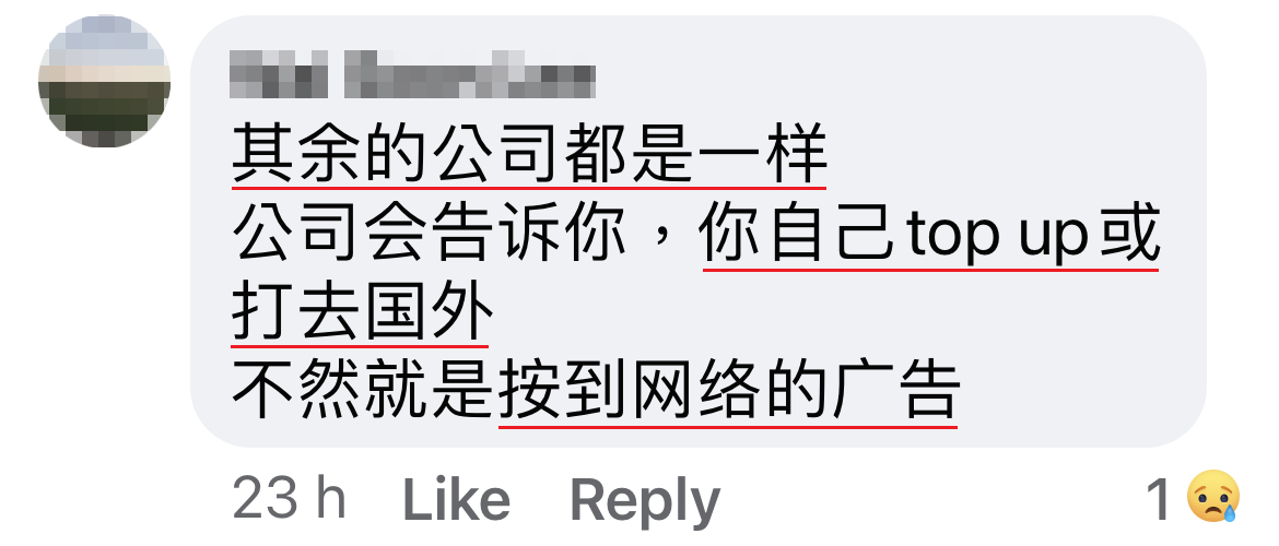 ▼ 网友在其他家的电讯公司也遇到这样的情况。