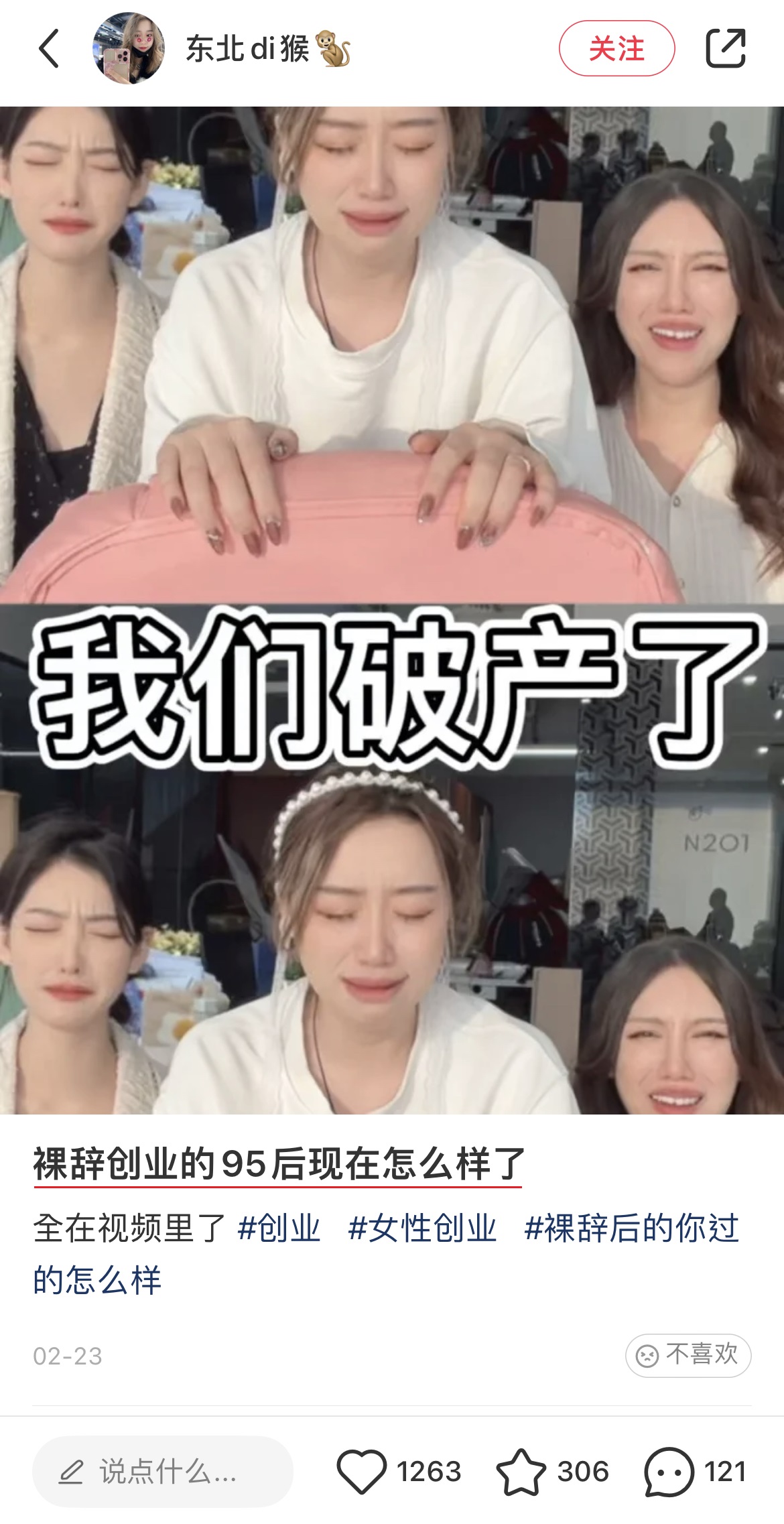 「我已经深刻认识到我的错误了,现在我就感觉好像什么都还来得及,又好像什么都无能为力。我该怎么办?我们用这个教训告诉你们:95后千万不要裸辞创业!」