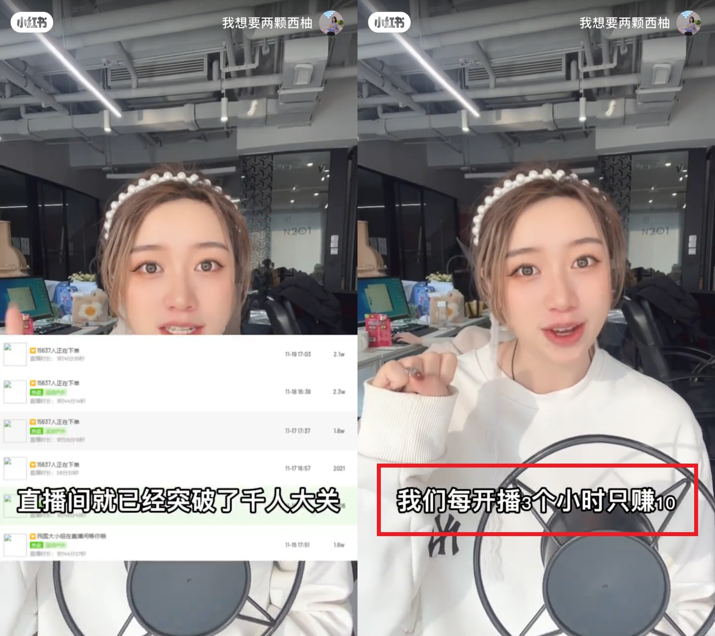 ▼ 女子表示他们在开始直播卖货的第三天,直播间就已经突破千人大关,而且每一场平均都有千人以上。「但是!我们每开播3个小时只赚10元(约 RM6.60)。」