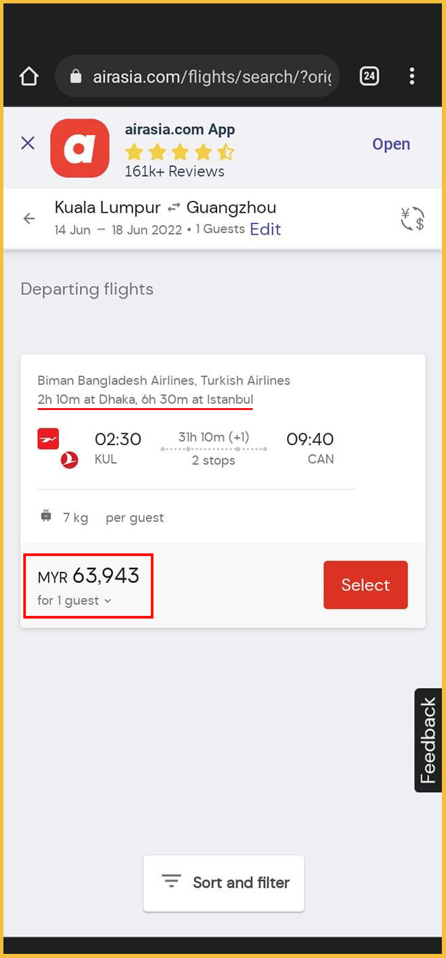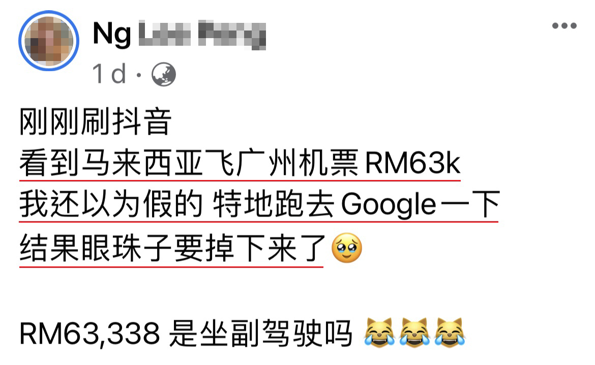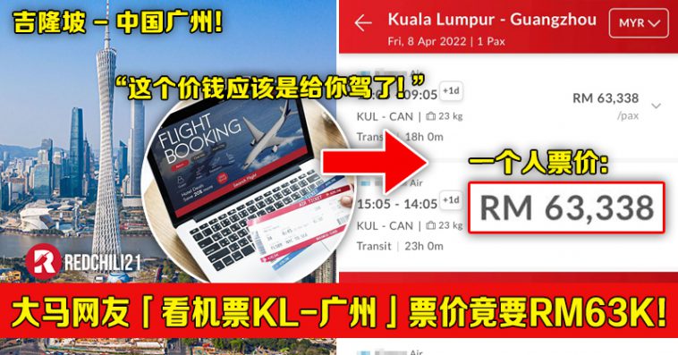 大马网友在抖音“冲浪”时无意间看到大马飞往广州的机票需要RM63K,好奇之下就亲自去搜寻查个究竟,不是亲眼看到还很难相信,竟然是真的!