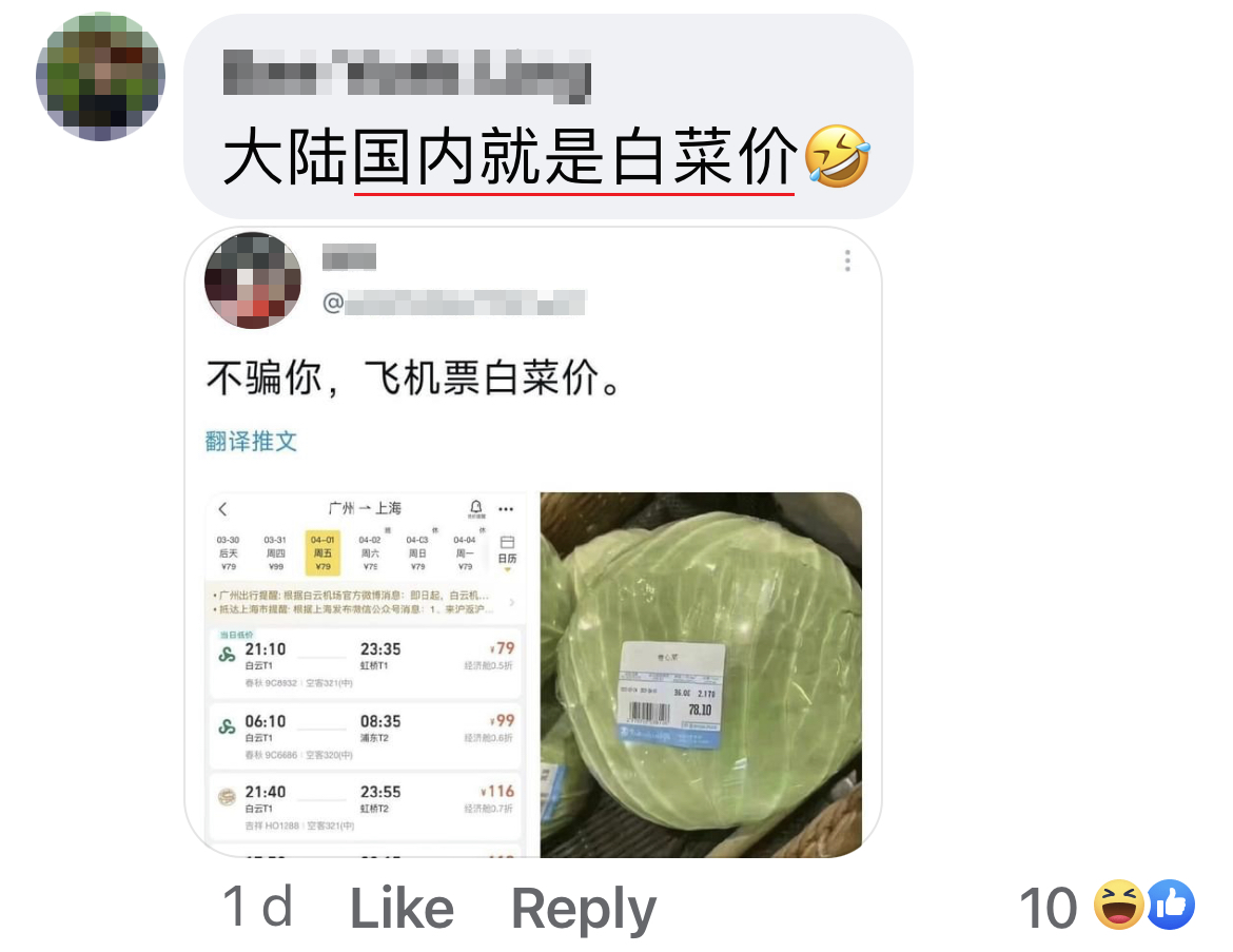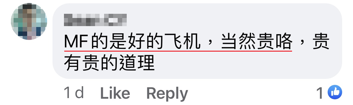 ▼ 有网友则表示这个航班的飞机确实是比较贵的。