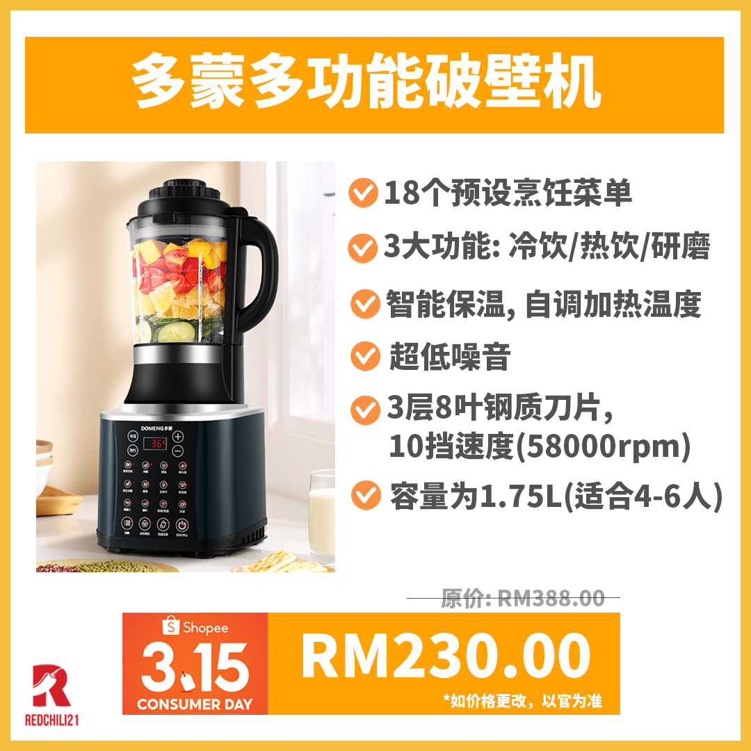 现代人的饮食习惯都越来越讲究健康,厨房家电最好是一机多功能,想吃什么、喝什么随时都可以自制一份!比如一台多功能的家用破壁机就是健康路上的神队友啦~