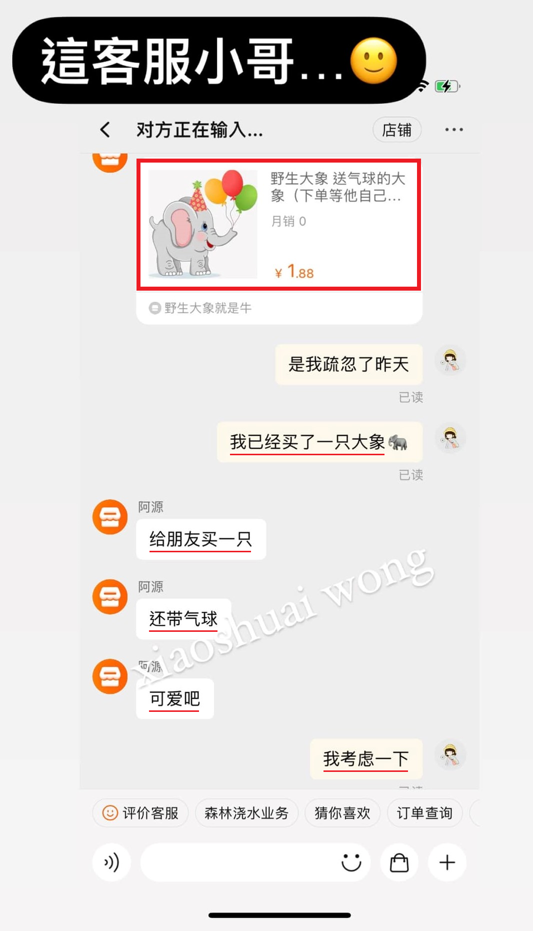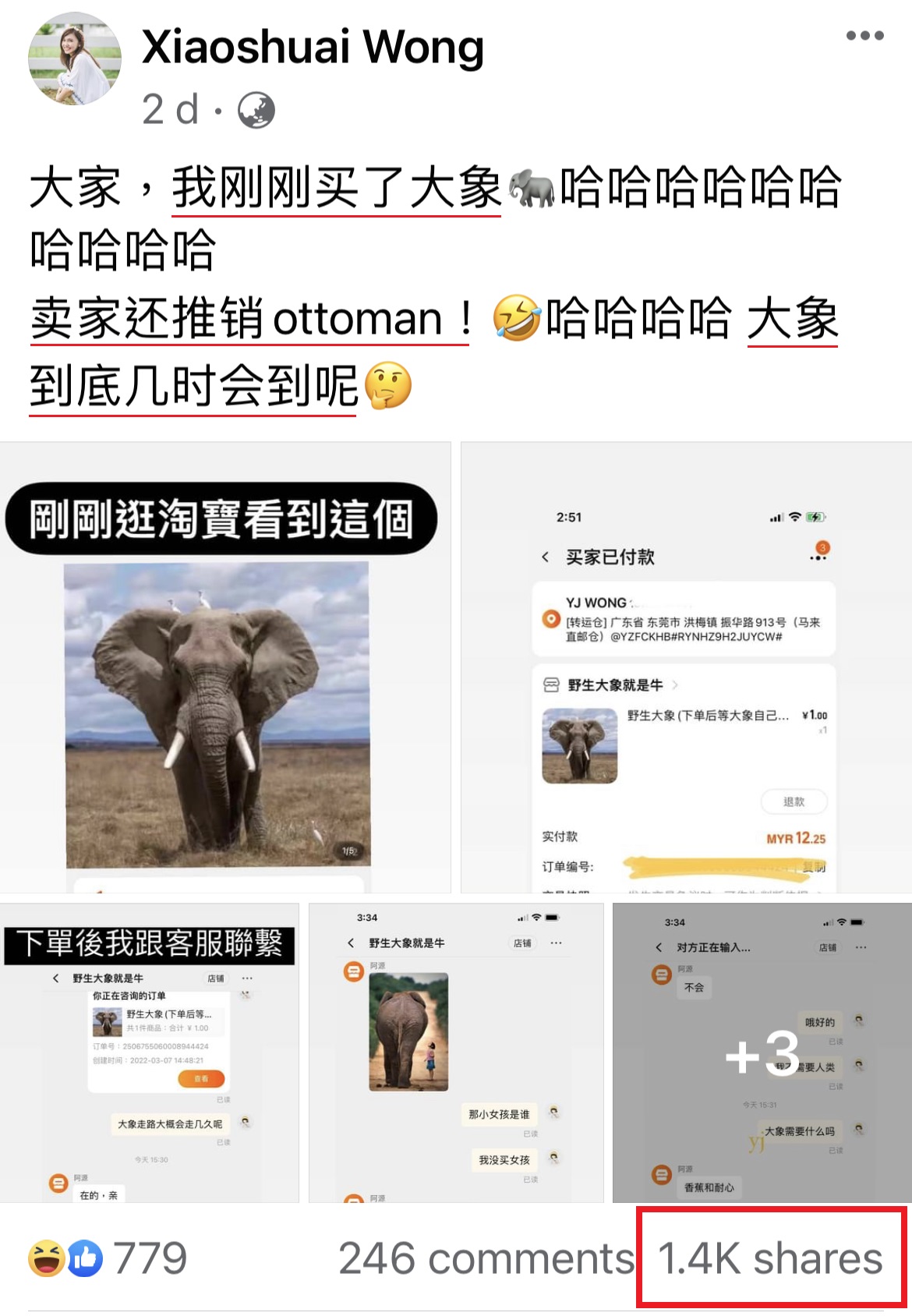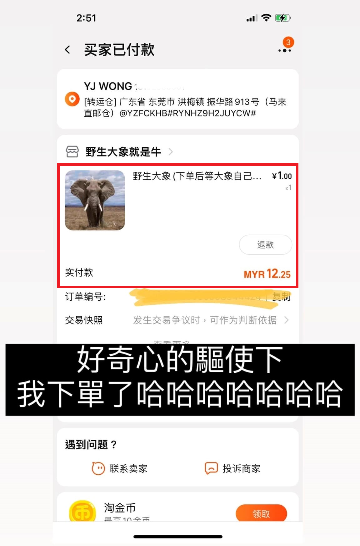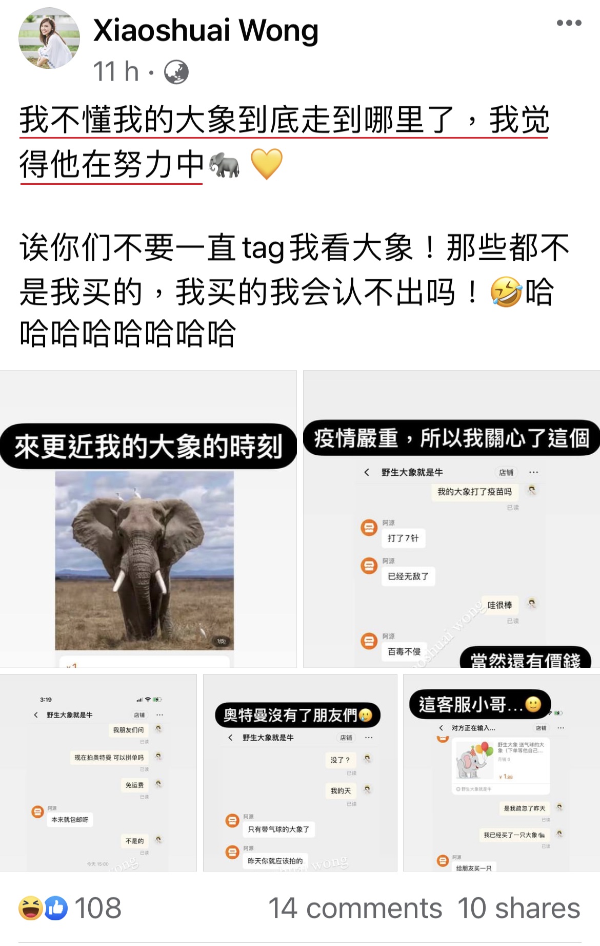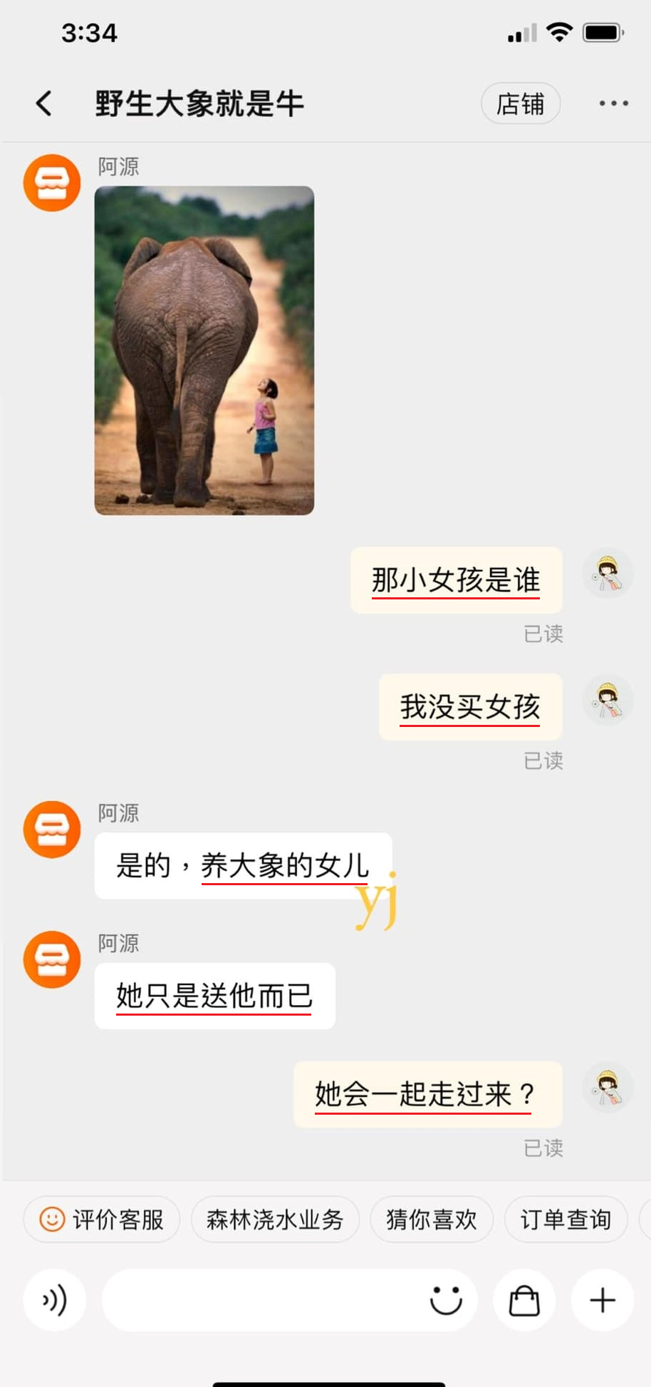 一名大马女子近日在淘宝网下单买了一只大象,店铺客服的沙雕回复笑翻网民!