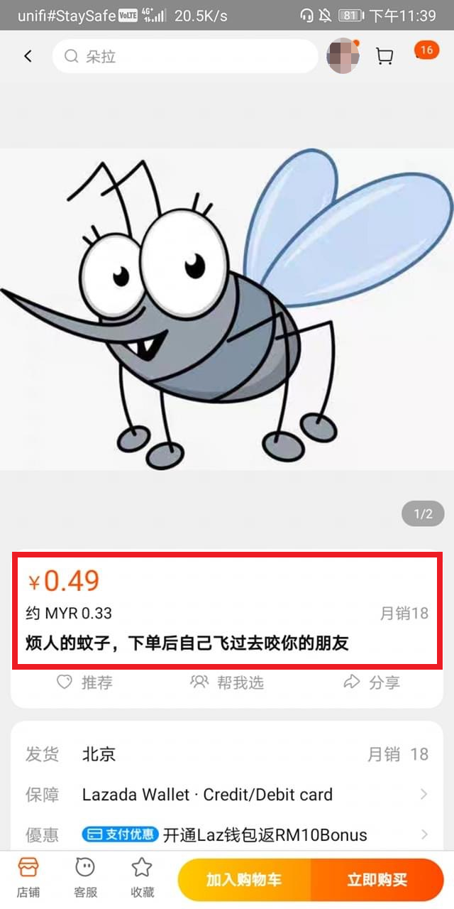 ▼ 于是楼主就下单了!真的买了!加上运费,总共付了RM12.25。