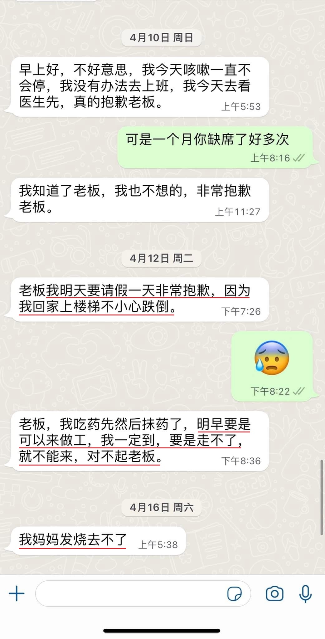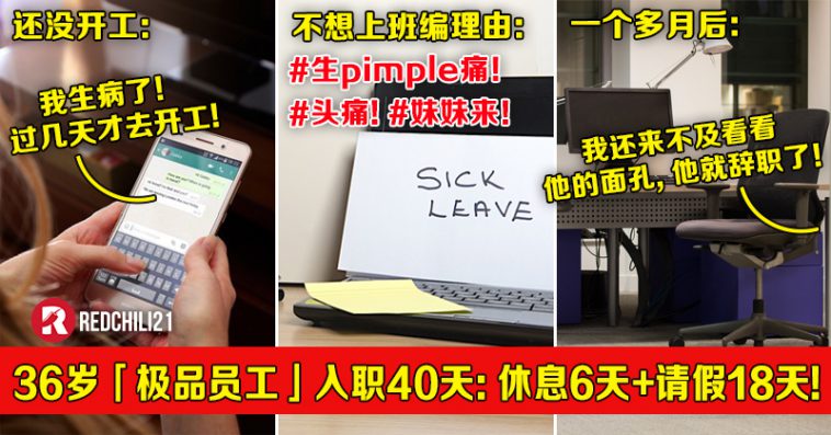 就像这名三十几岁的大马“极品”员工,从开工到辞职只维持了1个多月的时间,但期间就请了多达18天的假,请假理由多到可以写成一本书了…