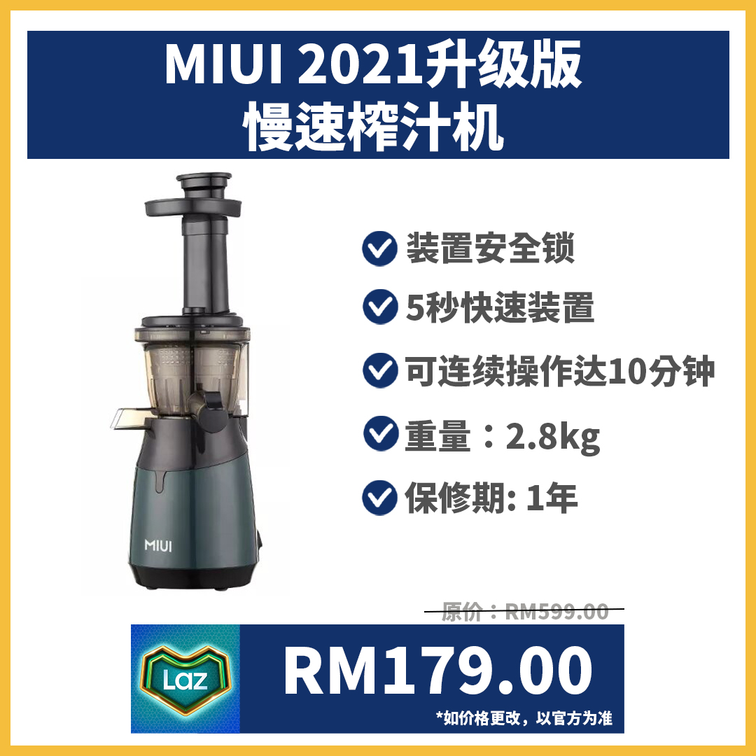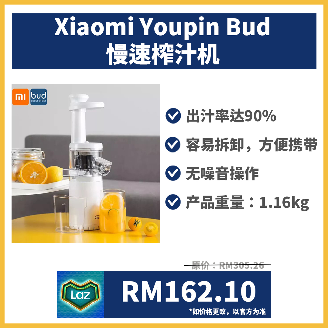 要保持健康的身体除了运动,更重要的是健康的饮食,而慢速榨汁机就是现代人的必备厨房家电之一。想入手一台但又有budget?没问题!