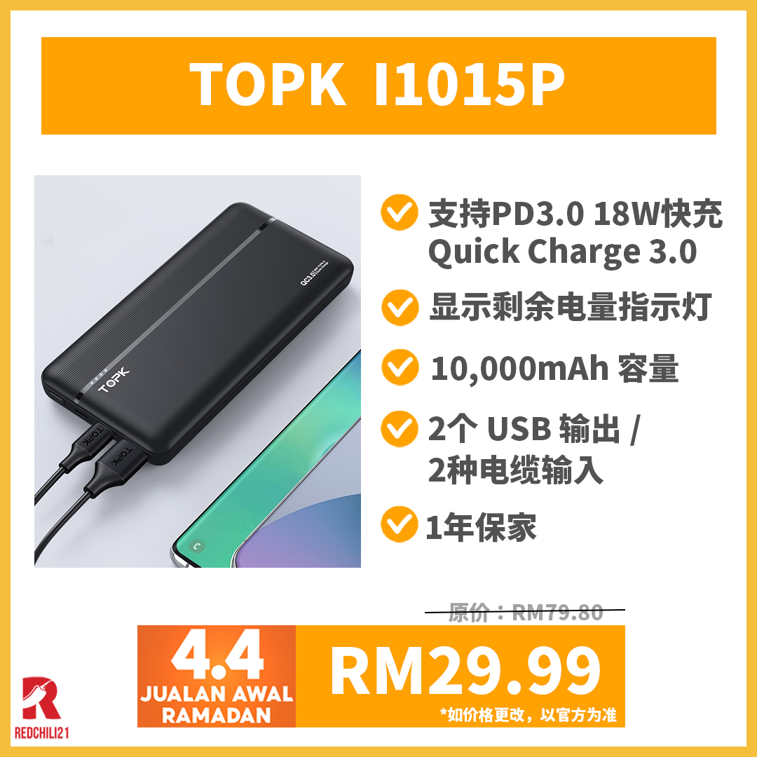 以下8款在 Shopee 高销量又高好评度的快充版充电宝,最低只需不到RM30哦!这次4月4日还有更便宜的优惠价呢!