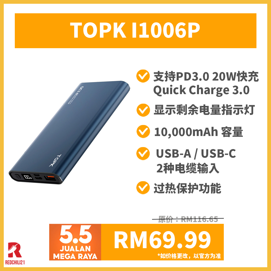 ▪ ② TOPK I1006P 10000mAh Powerbank 快充 充电宝
