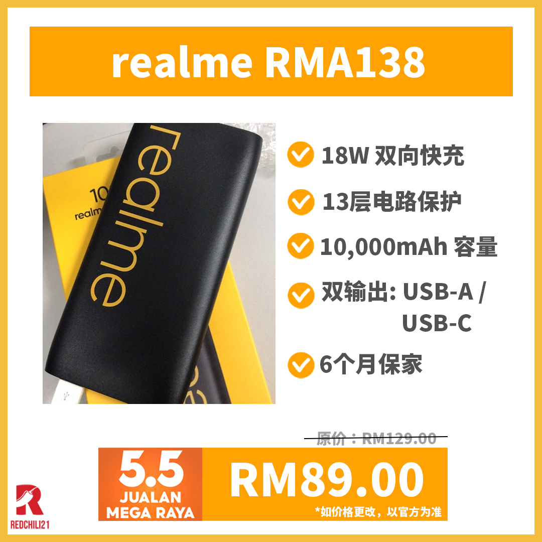 ▪ ③ realme RMA138 Powerbank 10000mAh 快充 充电宝
