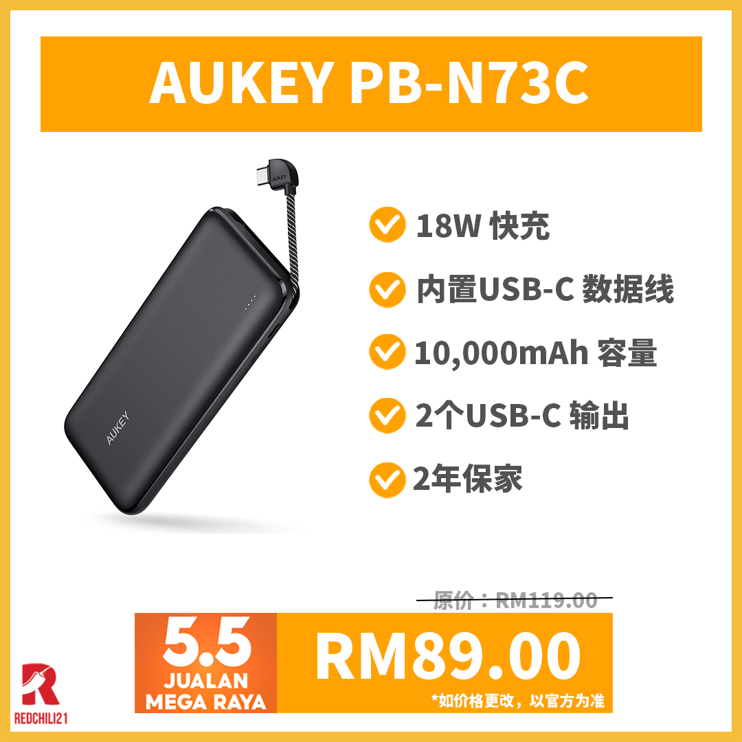 ▪ ⑥ Aukey PB-N73C N Series 10000mAh 快充 充电宝