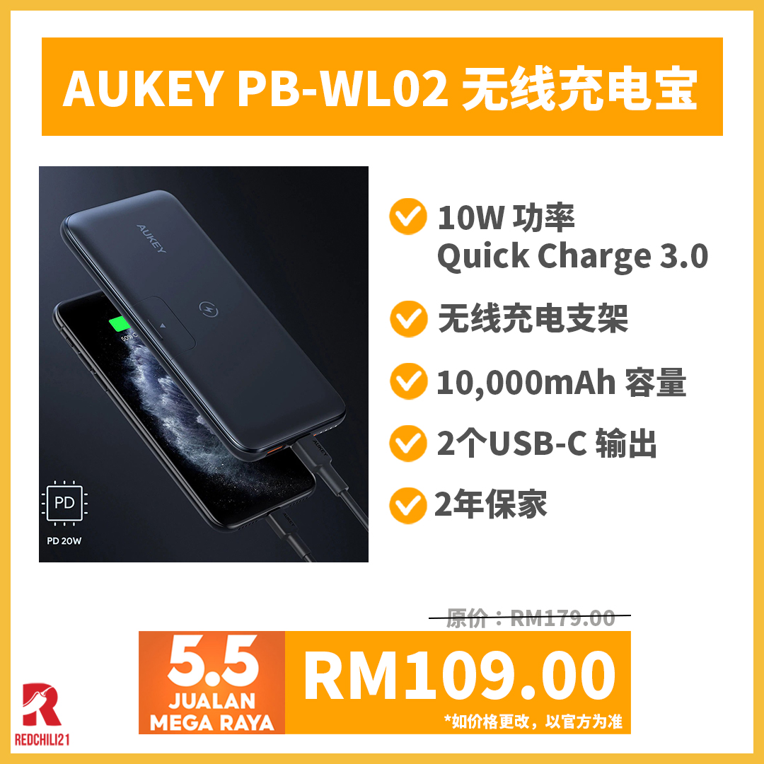 ▪ ⑦ Aukey PB-WL02 18W/10000mAh 快充 充电宝