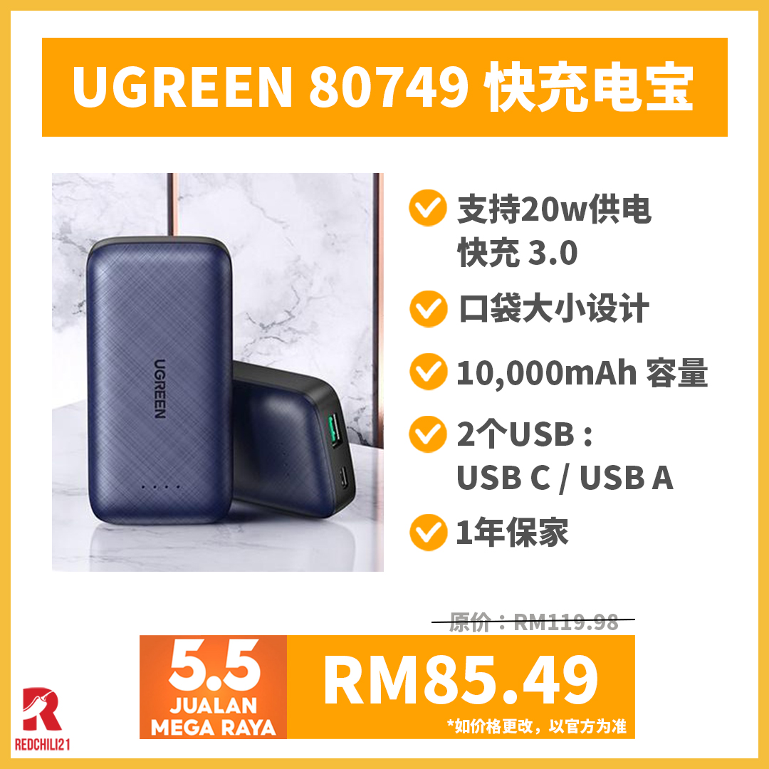 ▪ ⑧ UGREEN PowerBank 10000mAh 快充 充电宝