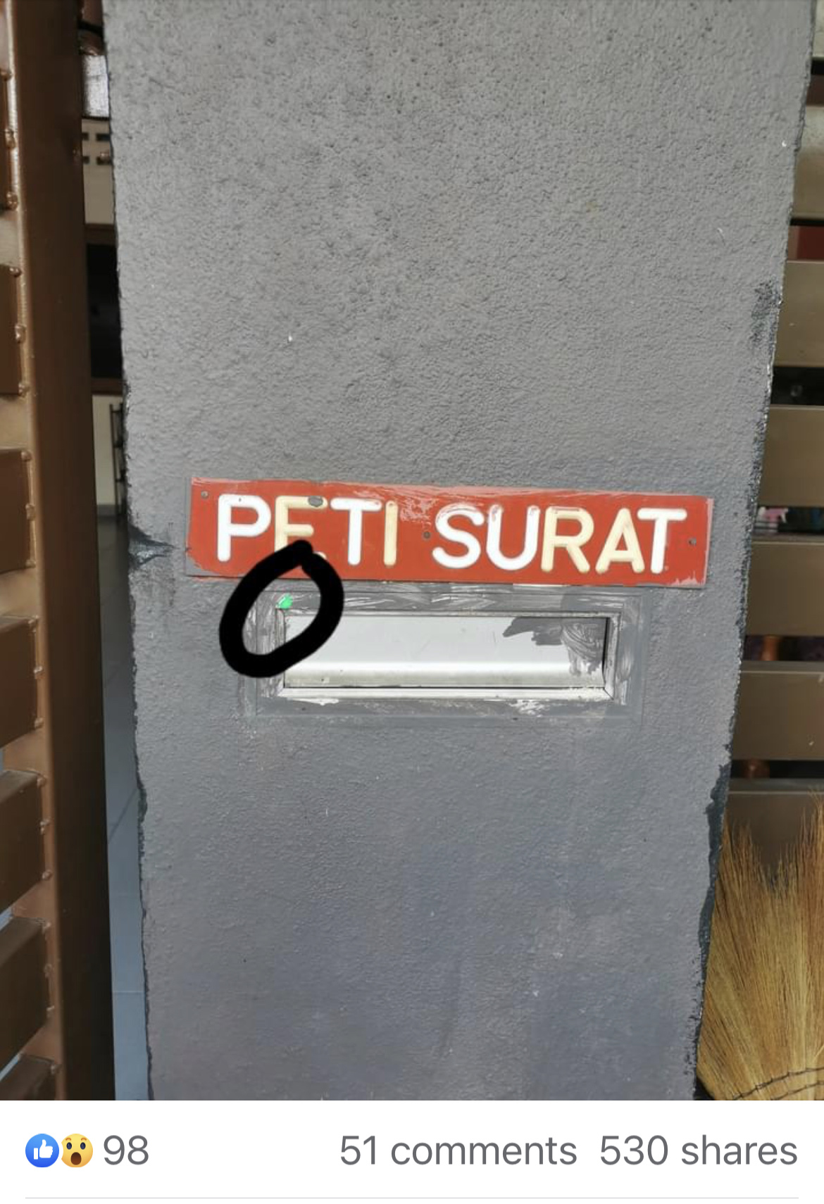 今早,隔壁马来邻居和附近印度邻居来跟我们说信箱有 sticker 的事情,后来在马来邻居的口中得知,他在网上也有看到这个东西,也叫我们注意。