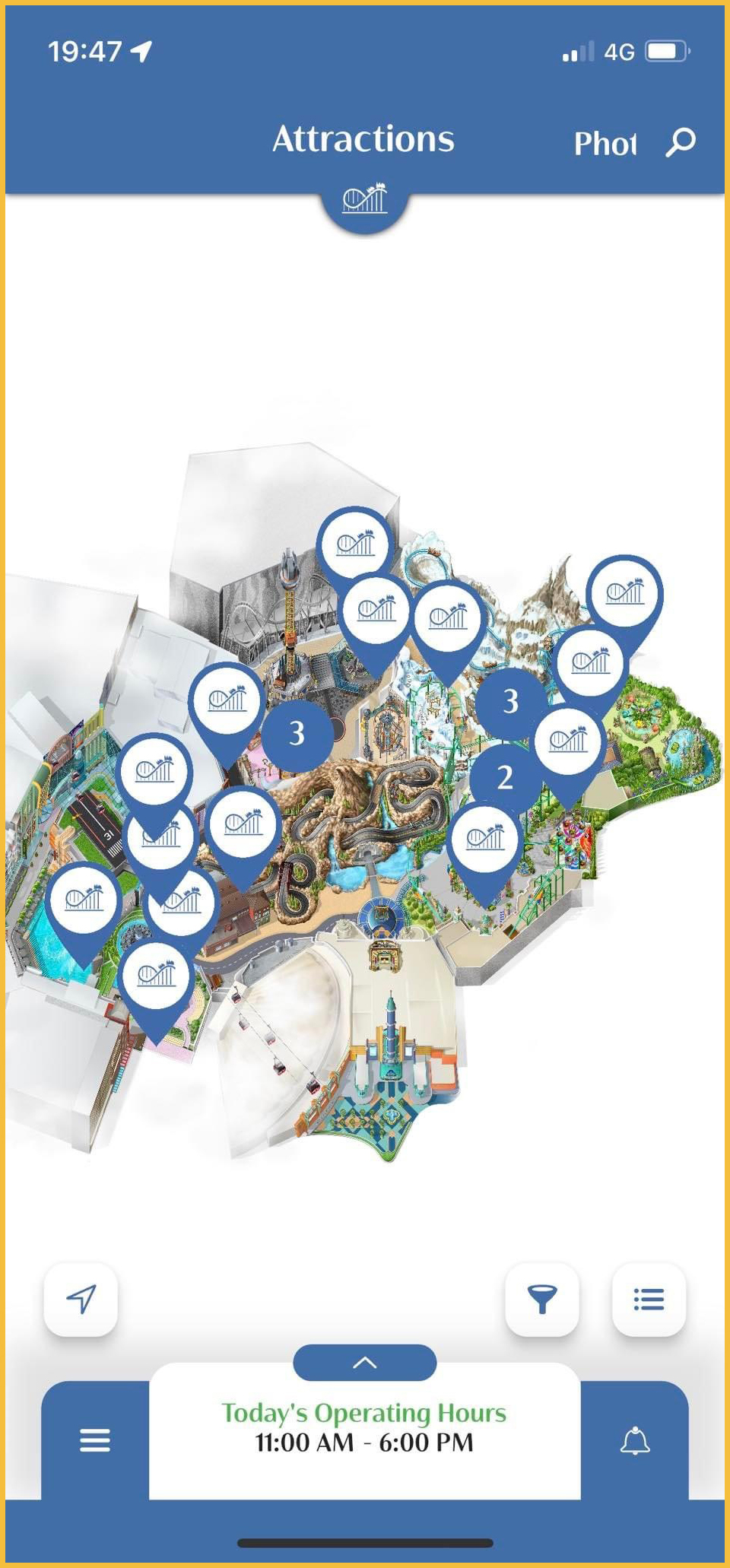 全部游乐设施有19个(包括 Coming Soon),我们就玩了12个。