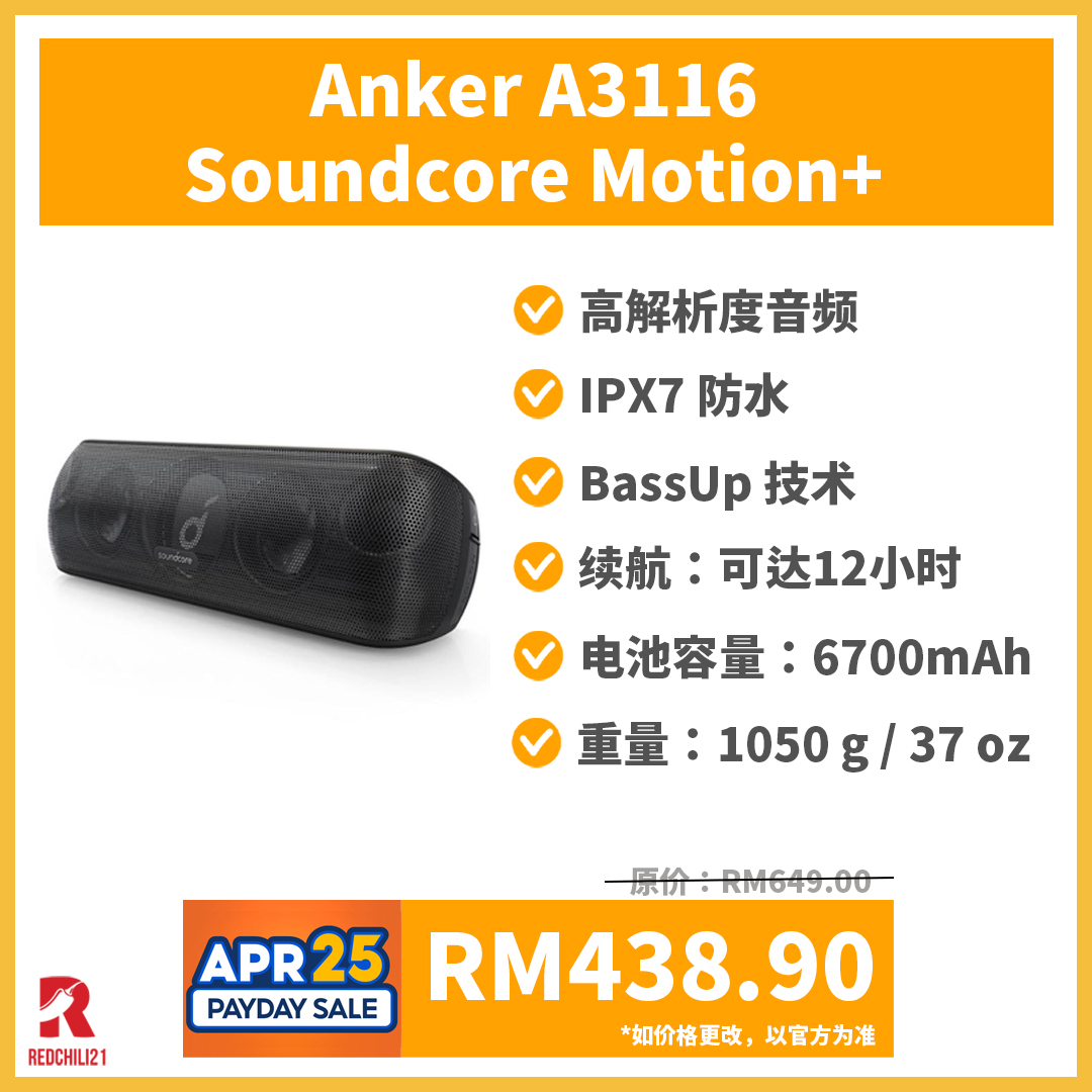 ② Anker A3116 Soundcore Motion+ 蓝牙音箱